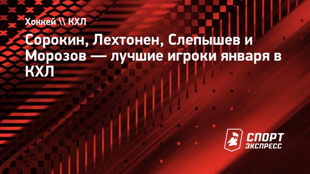 Сорокин, Лехтонен, Слепышев и Морозов — лучшие игроки января в КХЛ