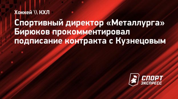 Спортивный директор «Металлурга» Бирюков: «Кузнецов — игрок высочайшего класса. Не могли упустить возможность»