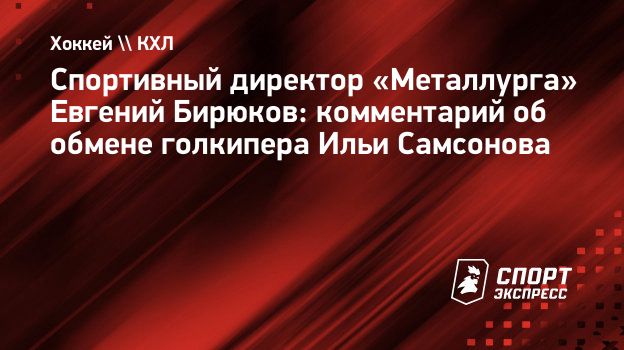 Спортивный директор «Металлурга» Евгений Бирюков прокомментировал обмен с «Сочи», в результате которого южане получили спортивные права на голкипера Илью Самсонова.