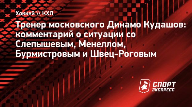 Главный тренер московского «Динамо» Алексей Кудашов прокомментировал ситуацию с Антоном Слепышевым, Бреннаном Менеллом, Александром Бурмистровым и Артемом Швец-Роговым.