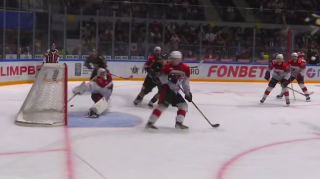 В третьем периоде при счете 4:2 в пользу омской команды голкипер клюшкой отбил шайбу после броска форварда «Адмирала» Егора Степанова.