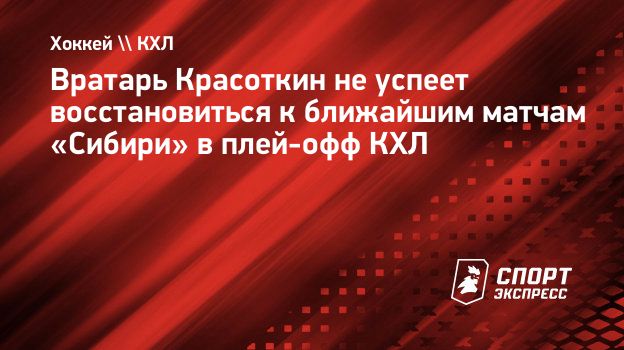 Вратарь «Сибири» Антон Красоткин пропустит ближайшие игры команды в плей-офф КХЛ.