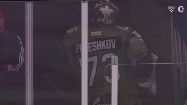 Вратарь СКА Артемий Плешков не сдержал эмоций после замены во втором периоде матча со «Спартаком» в FONBET Чемпионате КХЛ.