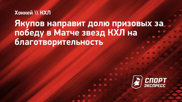 Нападающий «Авангарда» и сборной Дивизиона Чернышева Наиль Якупов намерен передать нуждающимся свою долю из выигранных призовых 5 миллионов рублей за победу в финале FONBET Матча звезд КХЛ с командой Дивизиона Боброва (9:8).