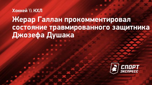 Главный тренер «Шанхай Дрэгонс» Жерар Галлан оценил состояние защитника команды Джозефа Душака, получившего травму в матче FONBET Чемпионата КХЛ против СКА (7:4).