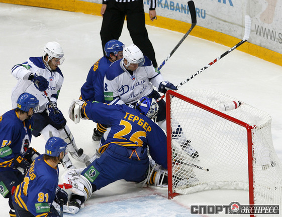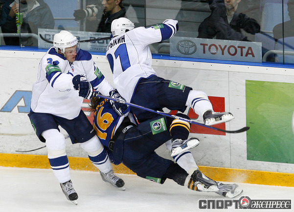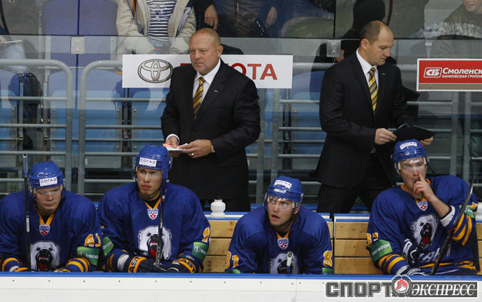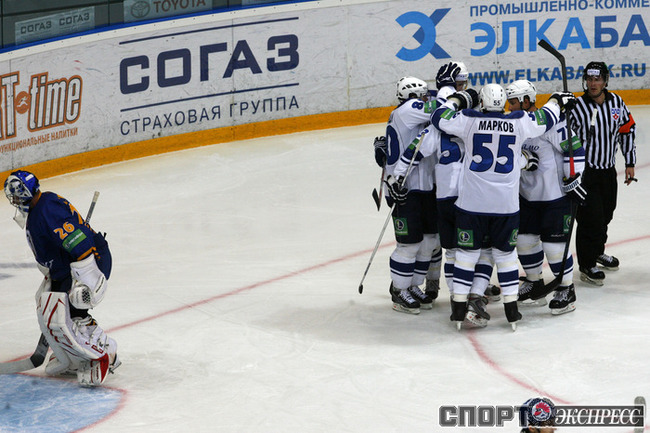 "Атлант" (Московская область) - "Динамо" (Москва) - 3:4 (1:0, 1:3, 1:1). Первую игру в качестве исполняющего обязанности главного тренера "Динамо" проводил Игорь Жилинский. Действующий наставник бело-голубых Сергей Котов, несмотря на поддержку со стороны большинства хоккеистов, пока отказывается вернуться в стан динамовцев. Фото - Алексей ИВАНОВ, "СЭ"