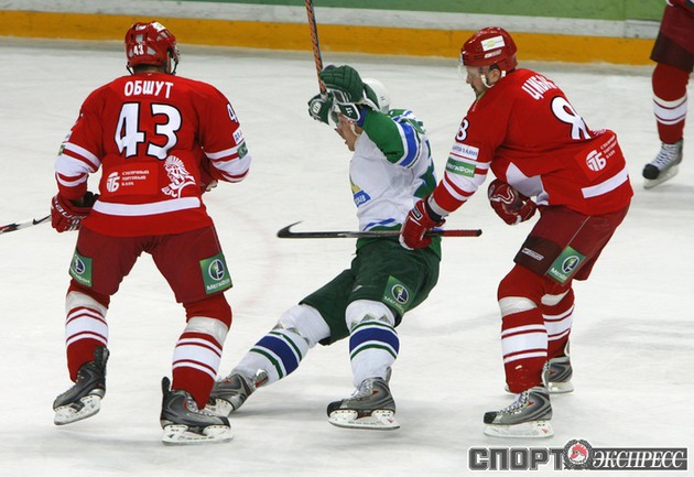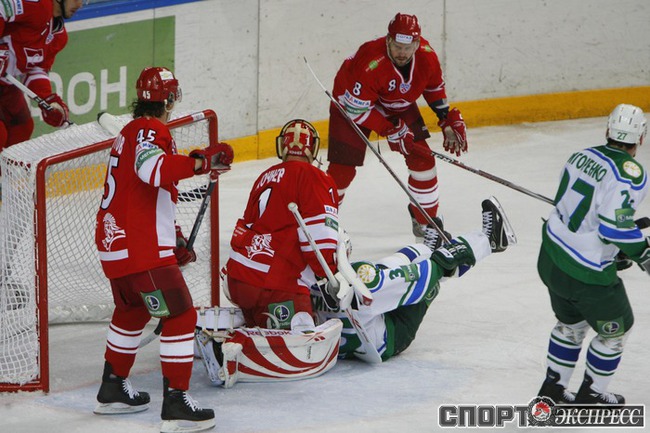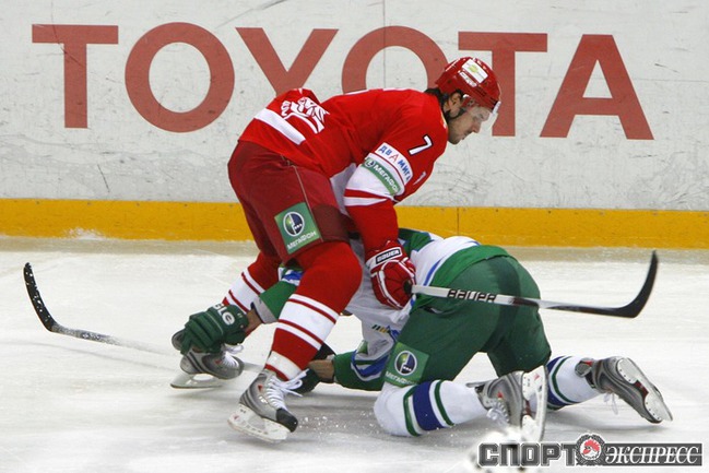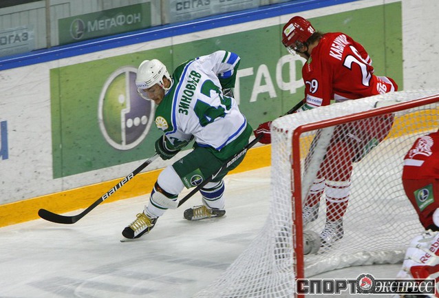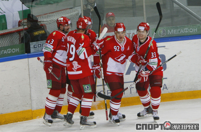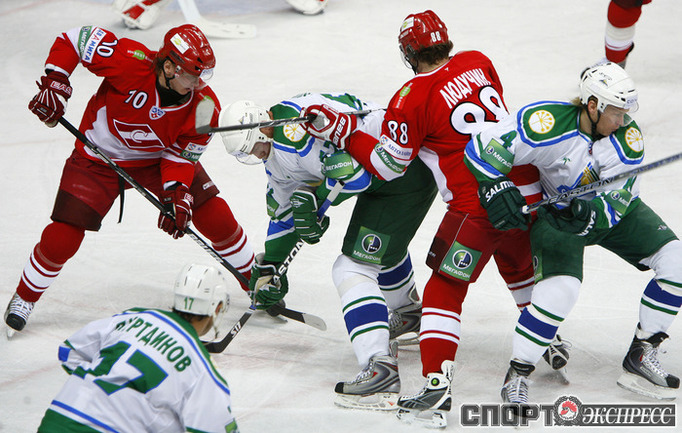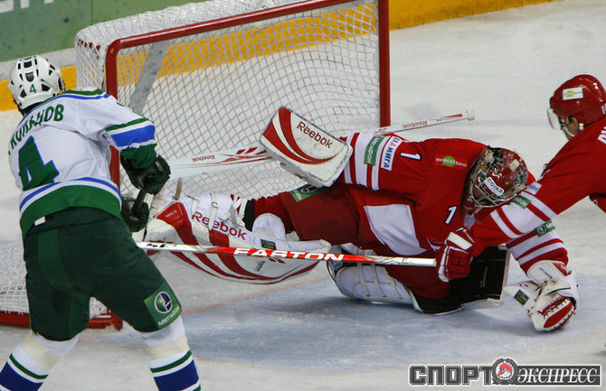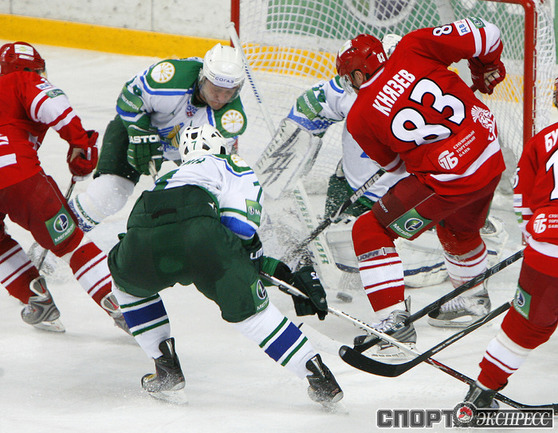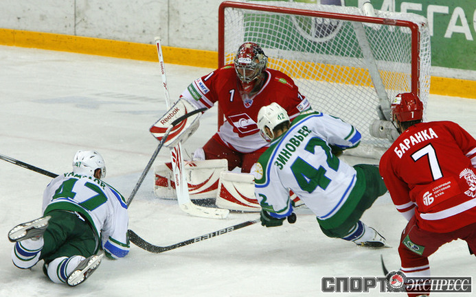 "Спартак" (Москва) - "Салават Юлаев" - 4:0 (1:0, 1:0, 2:0). Команда Вячеслава БЫКОВА потерпела первое поражение с сухим счетом в сезоне. Фото - Алексей ИВАНОВ, "СЭ"