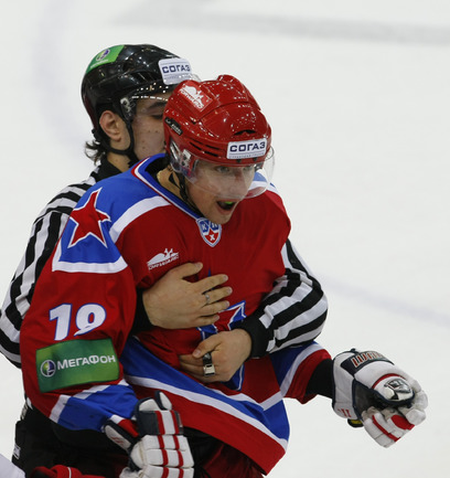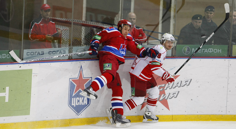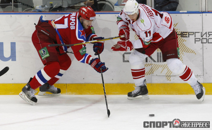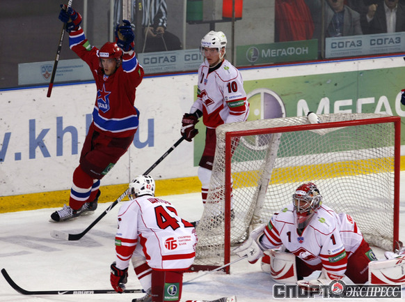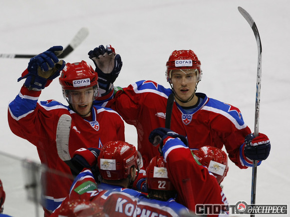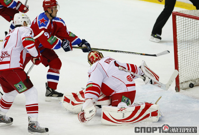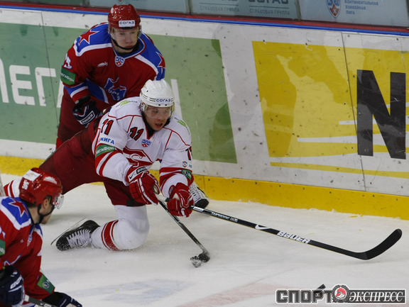 КХЛ. ЦСКА - "Спартак" (Москва) - 4:2 (2:0, 2:2, 0:0). Голы: Паршин - 8 (Суглобов), 9:57 (1:0 - бол.). Хартиган - 4 (Счастливый), 19:06 (2:0 - бол.). Левандовски - 2 (Радивоевич), 20:18 (2:1). Уппер - 3 (Обшут, Радивоевич), 23:02 (2:2 - бол.). Саюстов - 2 (Осипов), 35:37 (3:2). Суглобов - 5 (Гончаров), 36:12 (4:2). В столичном дерби ЦСКА победил "Спартак". Фото - Александр ВИЛЬФ, "СЭ"