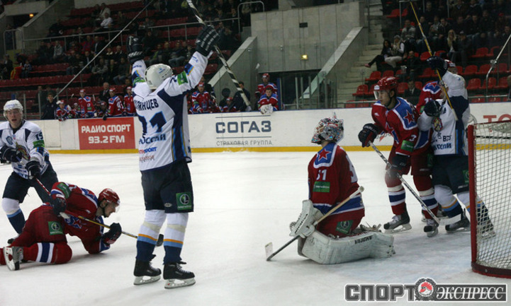 13.10.2009. КХЛ. ЦСКА - ХК МВД - 4:3 Б. Армейцы одержали победу в затянувшейся серии буллитов. Победный бросок на счету Дениса Паршина. Фото - Татьяна ДОРОГУТИНА, "СЭ"