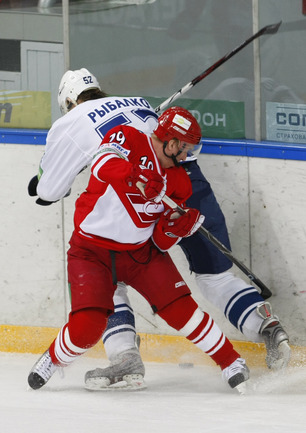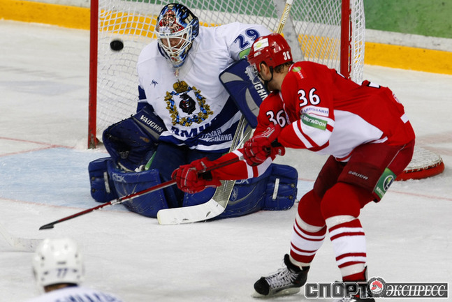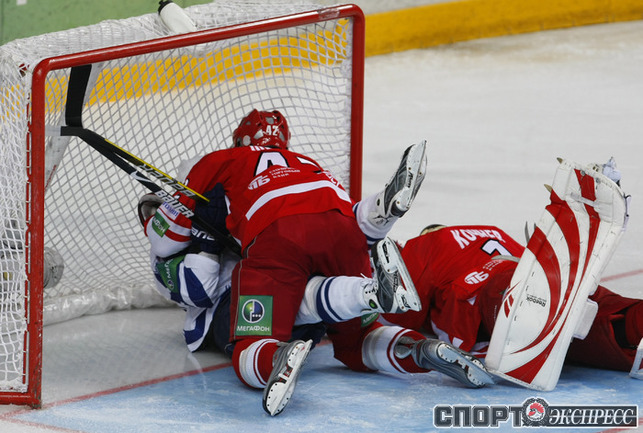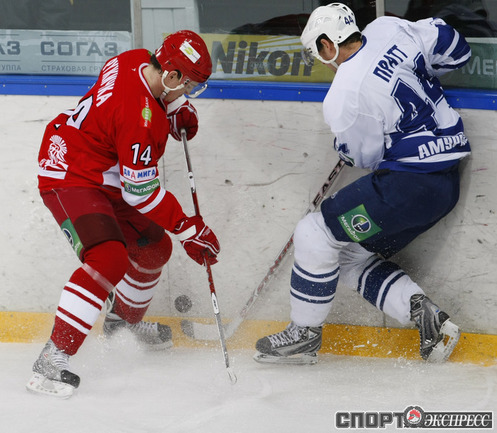КХЛ. Регулярный чемпионат. "Спартак" – "Амур" - 2:3 (0:0, 0:1, 2:2). Голы: Кривоножкин - 3 (Хасаншин, Копейкин), 38:35 (0:1 - бол.). Уппер - 8 (Левандовский, Обшут), 41:28 (1:1 - бол.). Пратт - 1 (Линг, Арекаев), 51:19 (1:2). Арекаев - 2 (Аксененко), 55:14 (1:3). Каблуков - 3 (Уппер), 59:02 (2:3). Фото – Александр ВИЛЬФ, "СЭ"