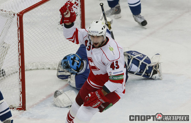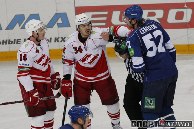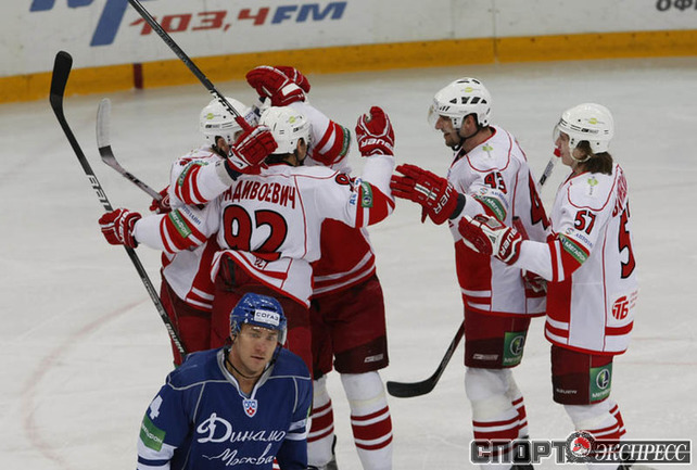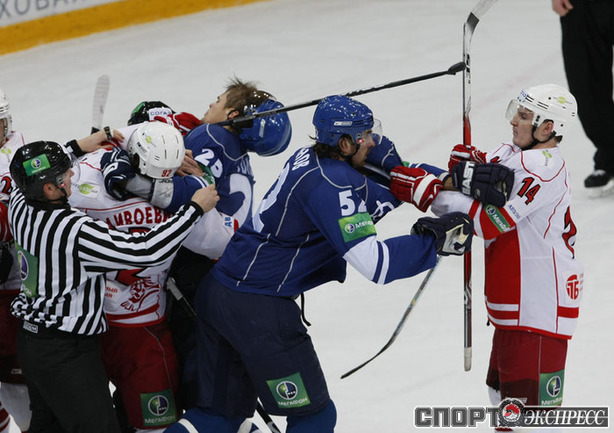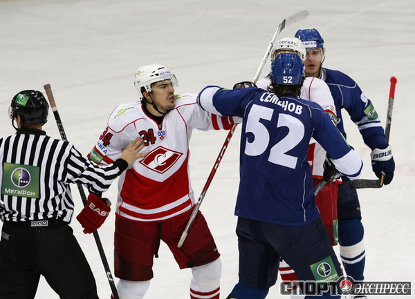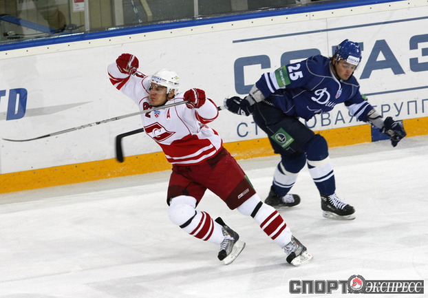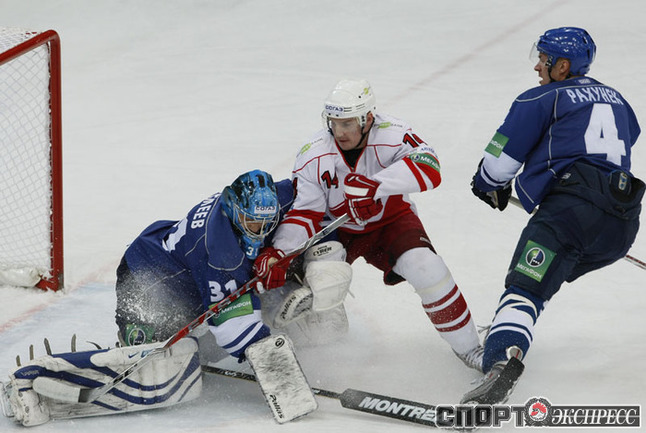 КХЛ. Регулярный чемпионат. "Динамо" (Москва) - "Спартак" (Москва) - 1:4 (0:2, 1:2, 0:0). Голы: Цибак - 8 (Ружичка), 4:20 (0:1). Рыбаков - 5 (Людучин), 17:55 (0:2). Марков - 4 (Умарк), 25:17 (1:2 - бол.). Левандовски - 6, 27:37 (1:3). Князев - 15, 34:59 (1:4). Фото - Александр ФЕДОРОВ, "СЭ"
