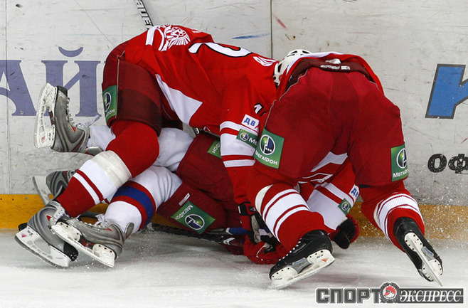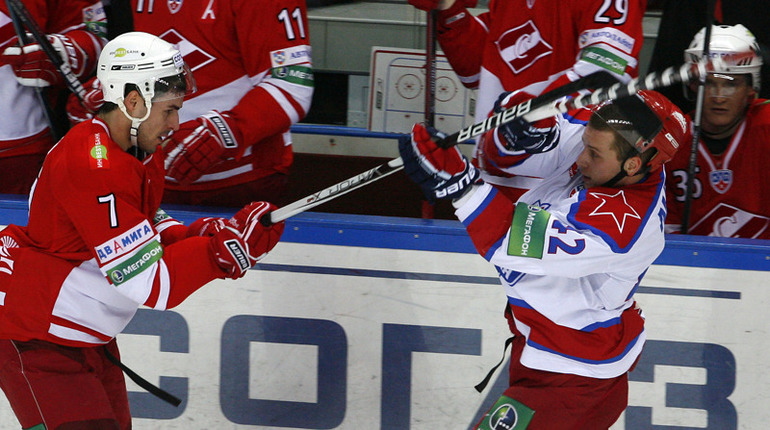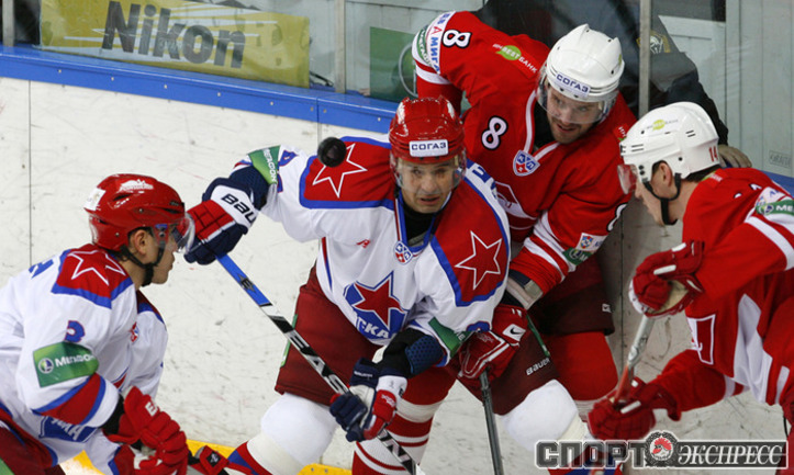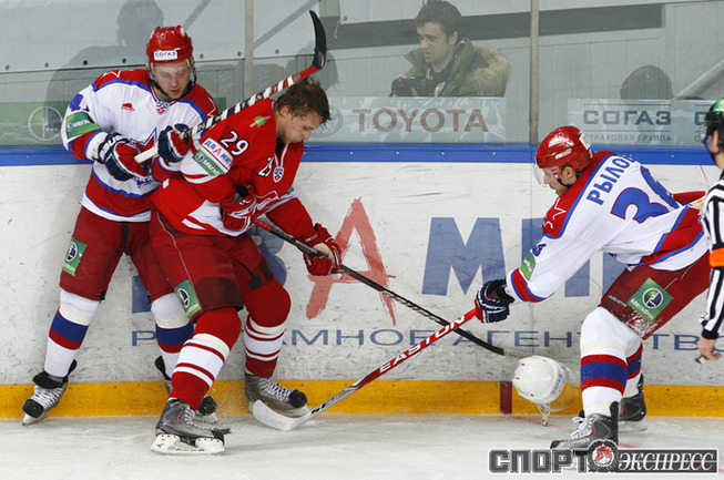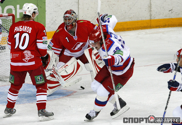 КХЛ. Регулярный чемпионат. "Спартак" (Москва) - ЦСКА - 3:2 (0:1, 2:0, 1:1). Во второй серии самого принципиального московского противостояния "Спартак" благодаря заброшенной в концовке третьего периода шайбе победил ЦСКА. Обыграв принципиального соперника, красно-белые взяли реванш за поражение в первой личной встрече сезона. Фото - Алексей ИВАНОВ, "СЭ"