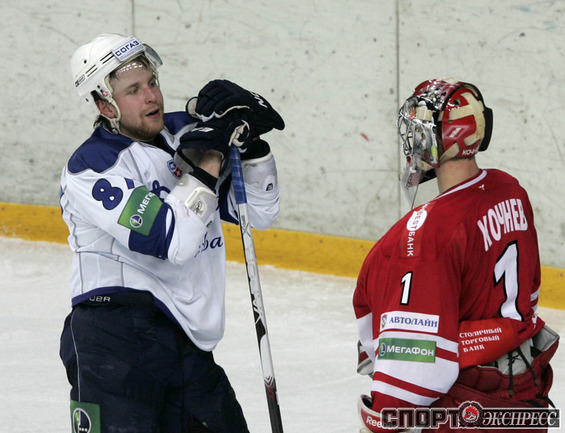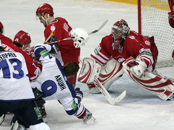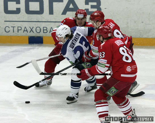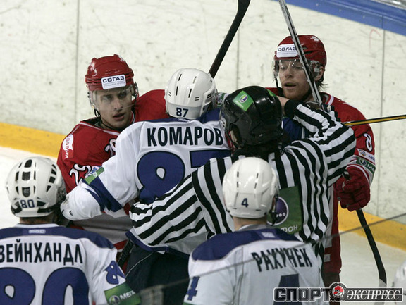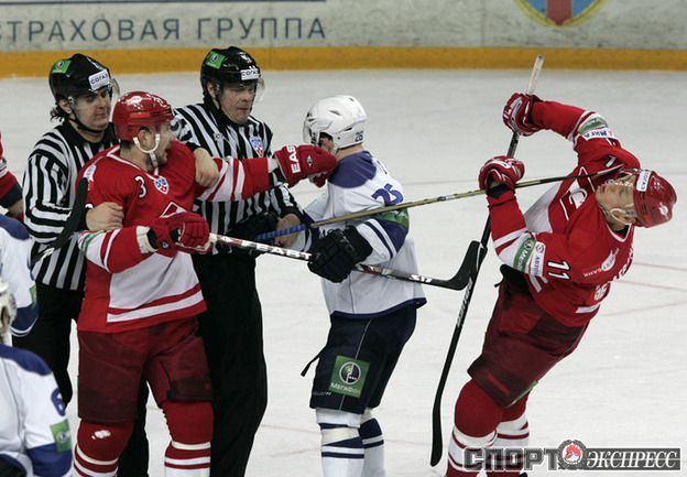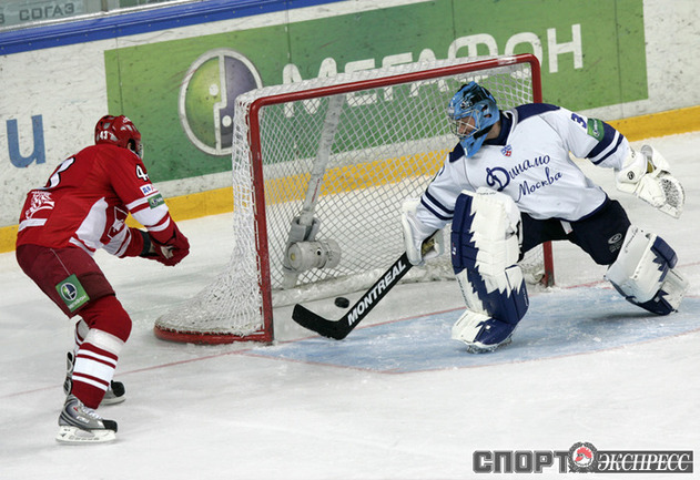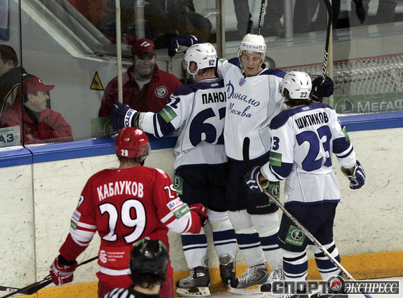 КХЛ. Регулярный чемпионат. "Спартак" (Москва) - "Динамо" (Москва) - 4:3 Б (0:0, 2:2, 1:1, 0:0, 1:0). Голы: Обшут - 8 (Ружичка), 25:13 (1:0). Цибак - 14 (Радивоевич), 28:56 (2:0). Умарк - 18 (Житник, Вышедкевич), 29:10 (2:1). Калюжный - 8 (Харью, Умарк), 39:53 (2:2). Шкотов - 3 (Левандовски, Уппер), 49:32 (3:2). Панов - 17, 55:29 (3:3). Нереализованный штрафной бросок: Вейнхандль (Д), 27:25. Победный буллит: Уппер. Фото - Федор УСПЕНСКИЙ, "СЭ"