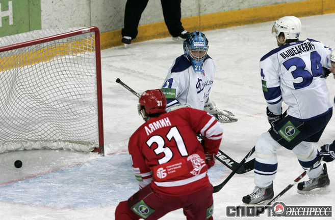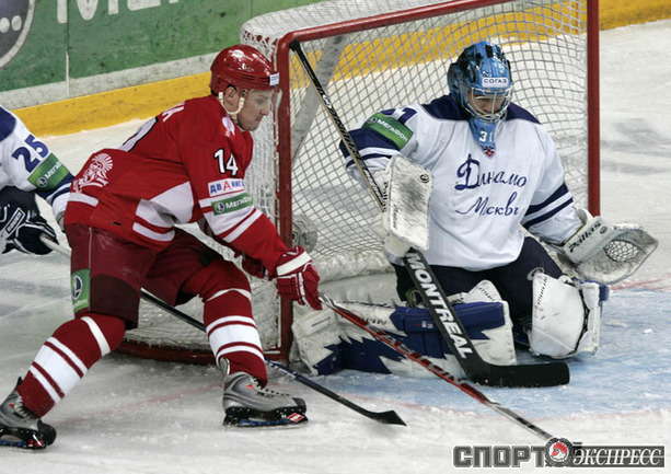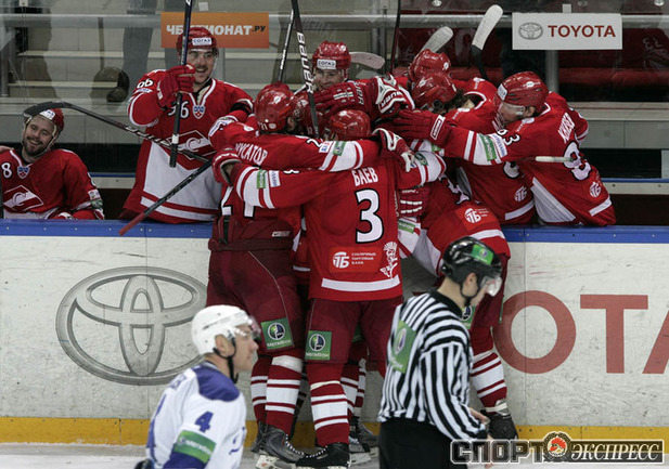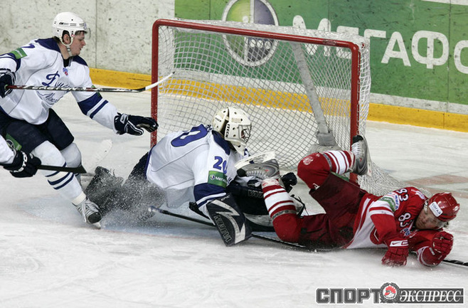 Кубок Гагарина.1/8 финала. Западная конференция. Четвертый матч. "Спартак" (Москва) - "Динамо" (Москва) - 4:0 (1:0, 3:0, 0:0). В первом в истории российского хоккея московском дерби "Спартака" и "Динамо" в плей-офф красно-белые в четвертом матче одержали победу над бело-голубыми со счетом 4:0 и шагнули в четвертьфинал Кубка Гагарина. Фото - Федор УСПЕНСКИЙ, "СЭ"