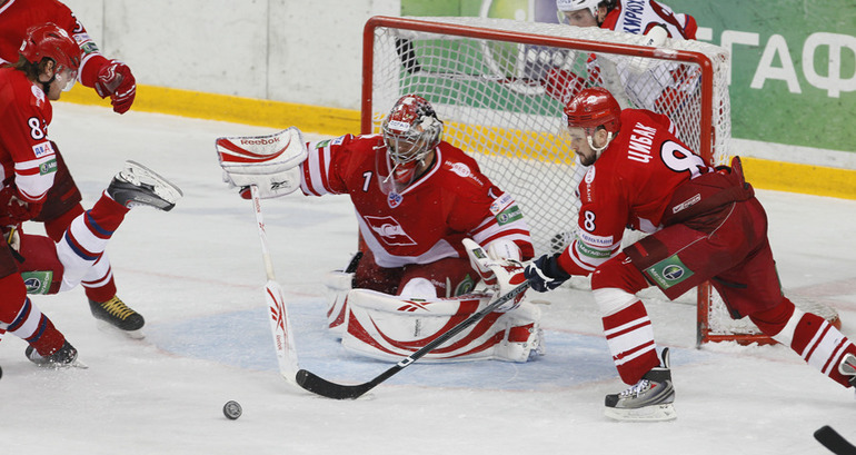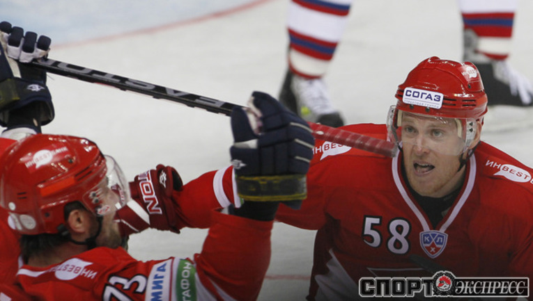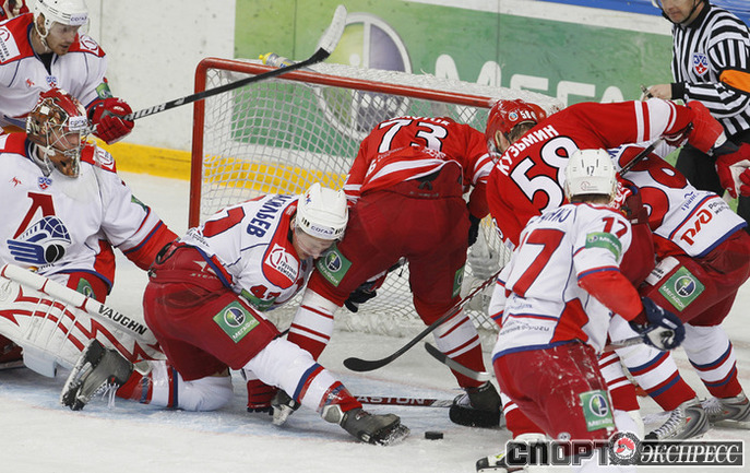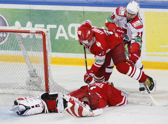 Хоккей. Кубок Гагарина. 1/4 финала. Западная конференция. Третий матч. "Спартак" (Москва) – "Локомотив" (Ярославль) – 3:2 (1:1, 2:1, 0:0). Для выхода в финал Западной конференции красно-белым необходимо одержать две победы. Фото - Александр ВИЛЬФ, "СЭ"
