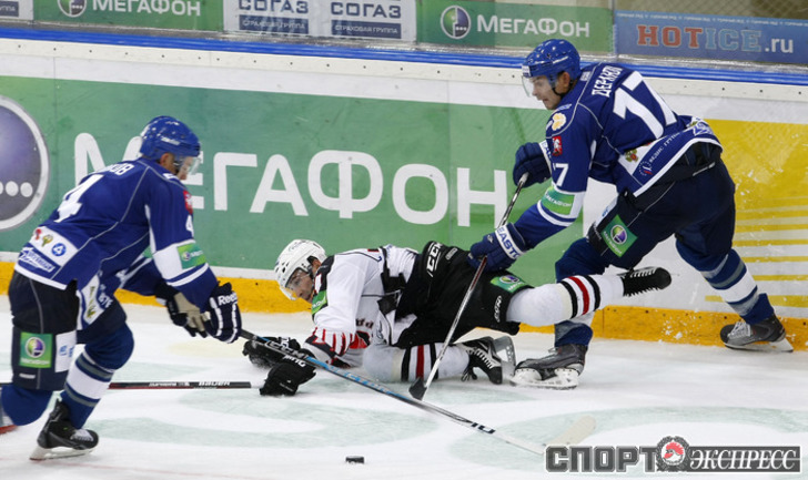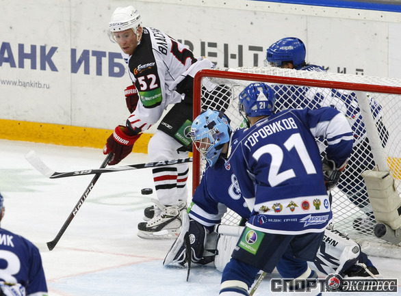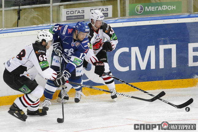КХЛ. Регулярный чемпионат. "Динамо" (Москва) - "Авангард" (Омск) - 3:1 (1:1, 1:0, 1:0). Хет-трик Дениса Мосалева принес победу "Динамо" над командой Яромира Ягра. Фото - Алексей ИВАНОВ, "СЭ"