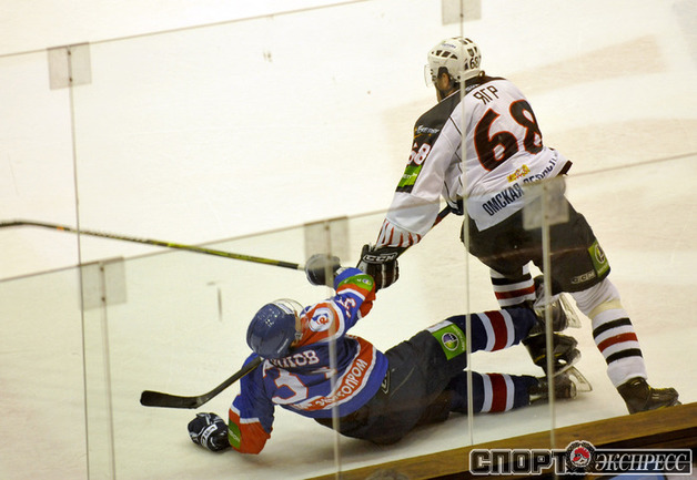 КХЛ. Регулярный чемпионат. "Сибирь" (Новосибирск) - "Авангард" (Омск) - 2:1 ОТ (1:1, 0:0, 0:0, 1:0). Во втором периоде Яромир Ягр подрался с Александром Хелльстрёмом. Фото - Алексей ИГНАТОВИЧ