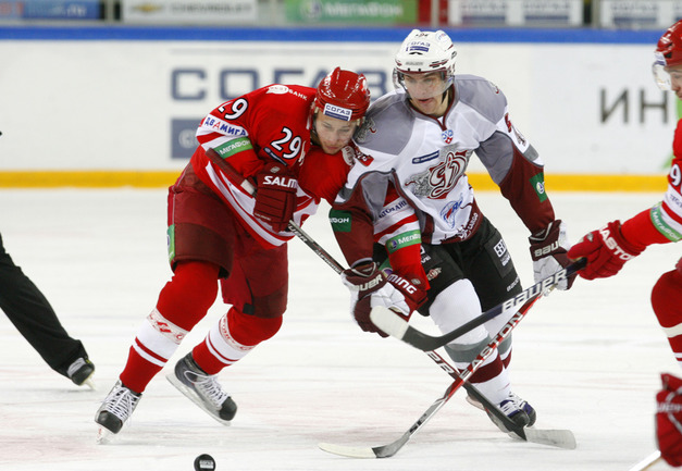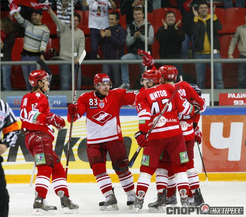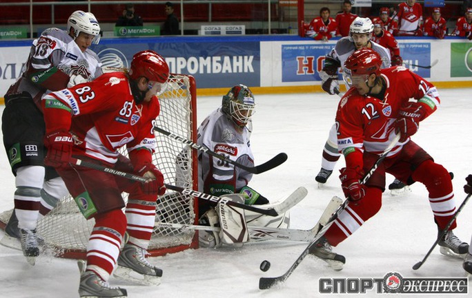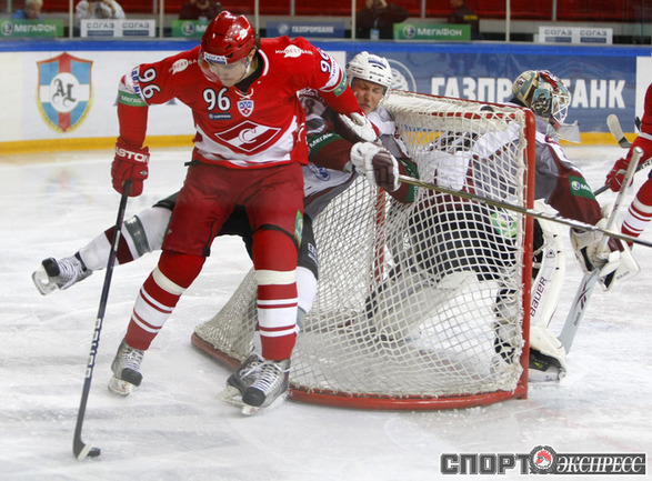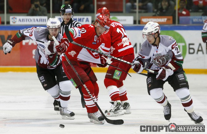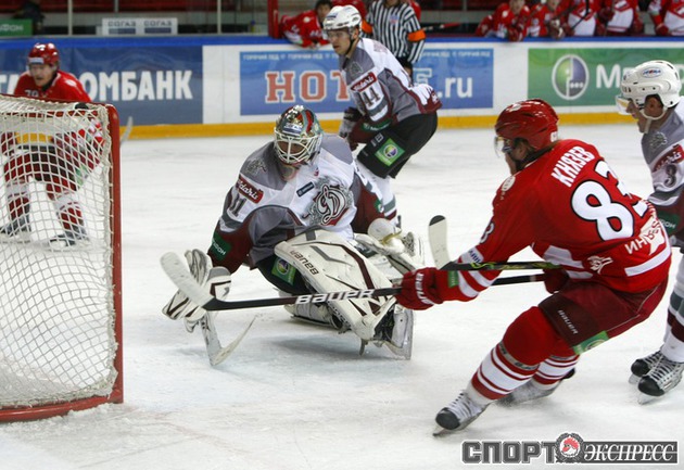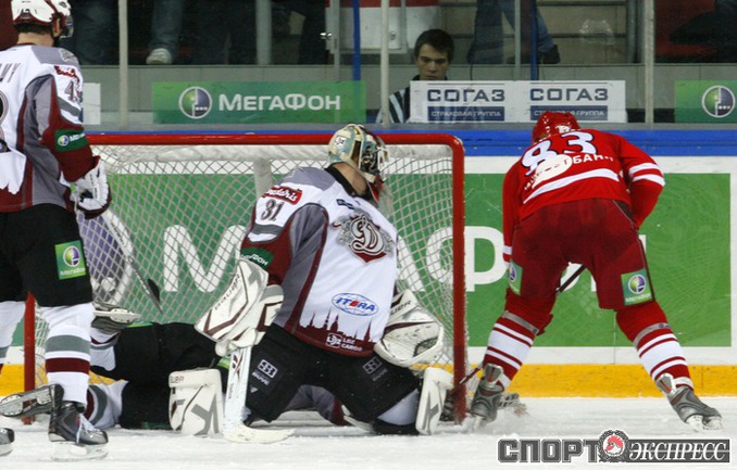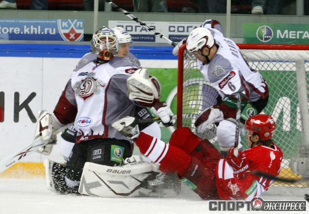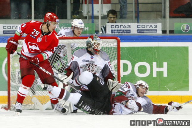 Континентальная хоккейная лига. "Спартак" - "Динамо" (Р) - 3:2 (2:1, 0:1, 1:0). В воротах красно-белых играл Алексей Яхин. Фото - Алексей ИВАНОВ, "СЭ"