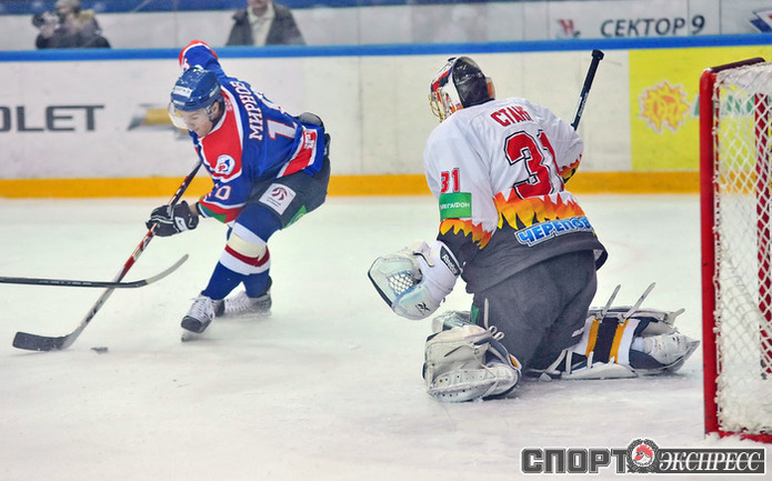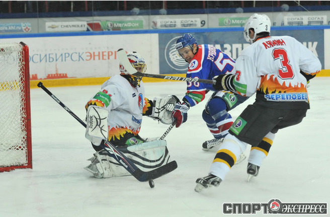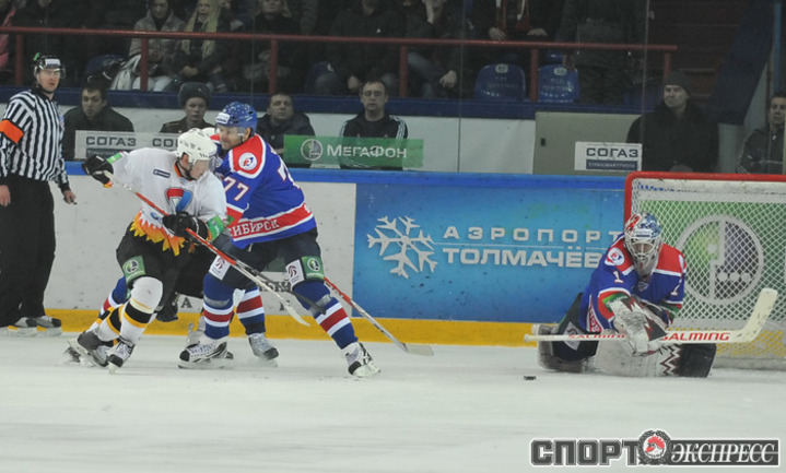 "Сибирь" - "Северсталь" - 2:4 (0:0; 2:0; 0:4). Проигрывая с сухим счетом после двух периодов, гости добились волевой победы. Фото - Алексей ИГНАТОВИЧ