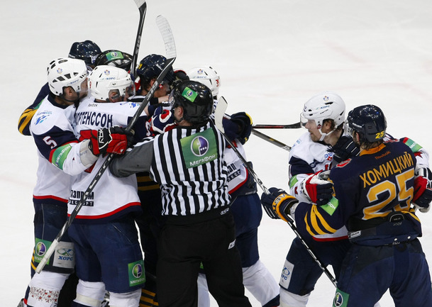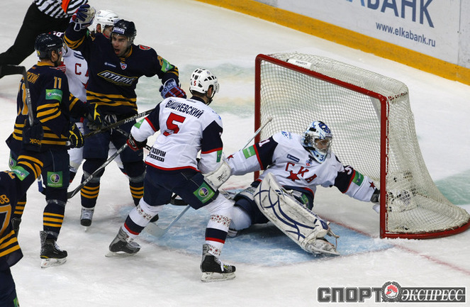 КХЛ. Плей-офф. 1/4 финала. Четвертый матч. "Атлант" (Московская область) - СКА (Санкт-Петербург) - 1:2 ОТ (1:0, 0:0, 0:1, 0:0). Счет в серии: 1-3 (3:5, 3:1, 0:3). Фото - Алексей ИВАНОВ, "СЭ"