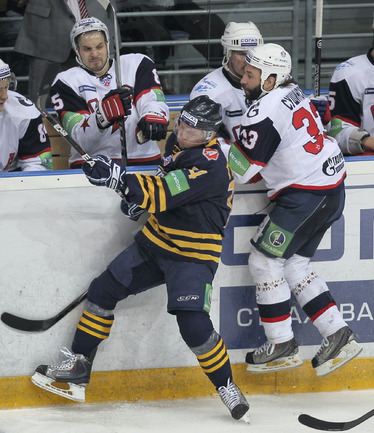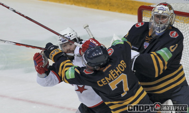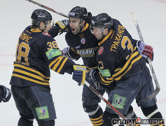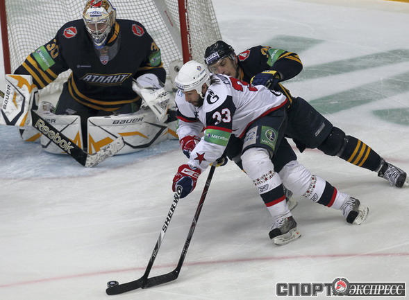КХЛ. Плей-офф. 1/4 финала. Шестой матч. "Атлант" (Московская область) - СКА (Санкт-Петербург) - 2:1 (0:0, 1:1, 1:0). Голы: Чаянек - 2 (Сушинский, Гребешков), 20:29 (0:1). Иргл - 1 (Марек), 36:24 (1:1). Марек - 2 (Траханов), 41:16 (2:1). Фото - Александра ФЕДОРОВА, "СЭ"