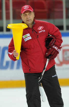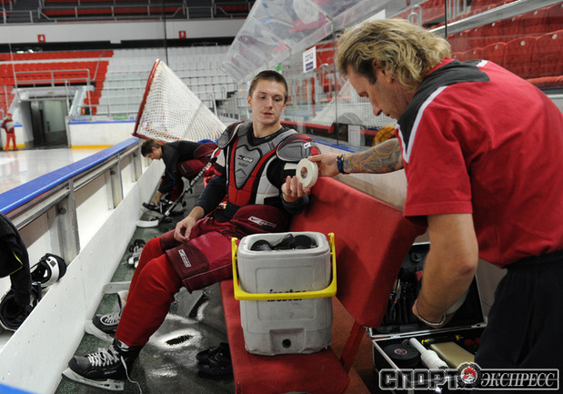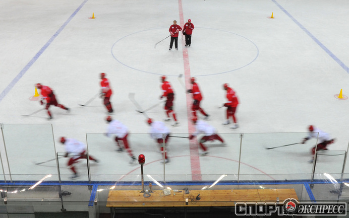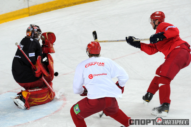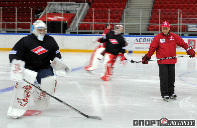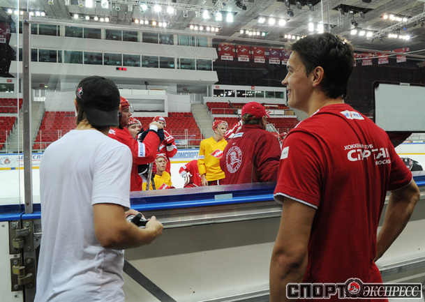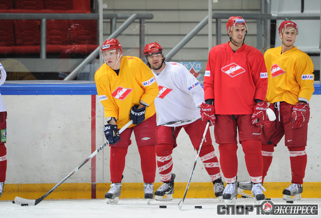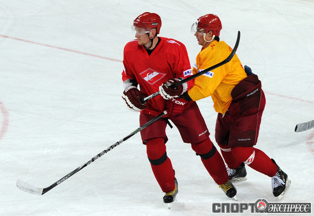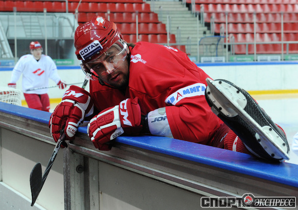 Хоккей. Московский "Спартак" продолжает подготовку к новому сезону. На утренней тренировке команды в Сокольниках присутствовал нападающий Бранко Радивоевич, с которым сегодня по взаимному согласию сторон расторгнут контракт. Экс-капитан красно-белых переходит в "Атлант". Фото - Федор УСПЕНСКИЙ, "СЭ"