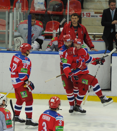 4.10.2011. Москва. Хоккей. КХЛ. Регулярный чемпионат. ЦСКА- "Металлург" Нк - 3:1 (1:0, 1:1, 2:1, 3:1). Фото Антона СЕРГИЕНКО, "СЭ Интернет"