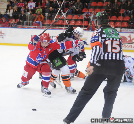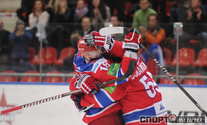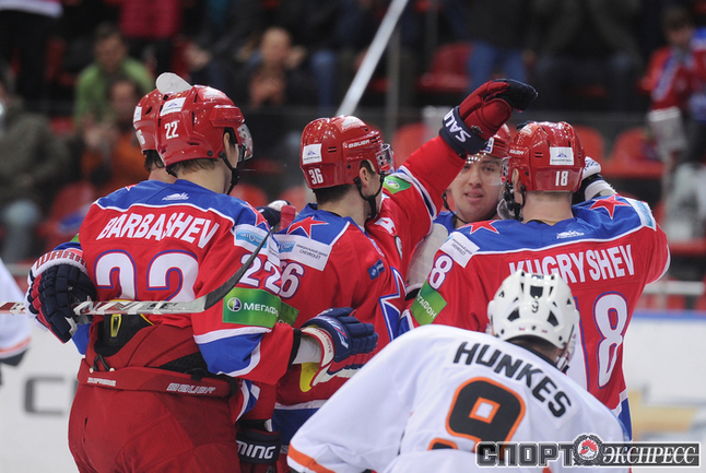 Сегодня. Москва. ЛДС ЦСКА. ЦСКА - "Лев" - 6:1. Армейцы крупно обыграли на своем льду словацкий "Лев". Фото Антона СЕРГИЕНКО "СЭ Интернет".