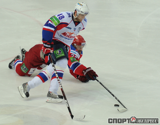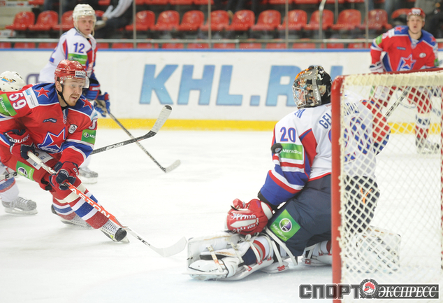 31 октября 2011. КХЛ. Регулярный чемпионат. Москва. ЦСКА - "Металлург" Мг - 4:2 (2:0, 1:0, 1:2). Голы: Кулемин - 2 (Пронин, Бадюков), 2:09 (1:0). Широков - 9, 3:44 (2:0). Перссон - 2 (Широков), 35:42 (3:0 - бол.). Бут - 6 (Михнов), 44:46 (3:1). Буравчиков - 2 (Кулемин), 48:15 (4:1). Лисин - 3, 58:24 (4:2 - бол.). Вратари: Стана - Лисутин (Гелашвили, 3:44, 58:50). Фото Антона СЕРГИЕНКО, "СЭ Интернет"