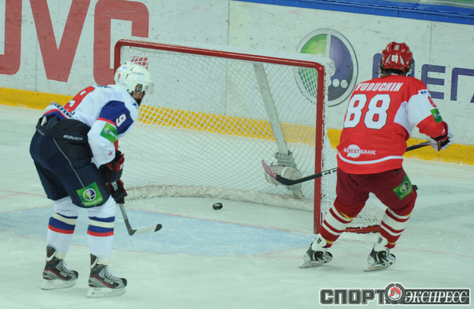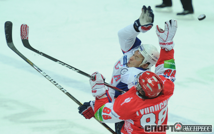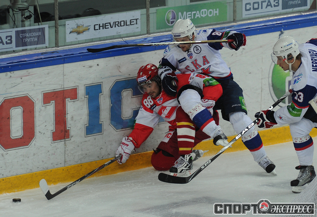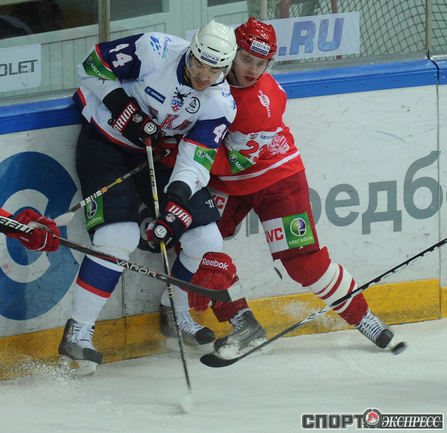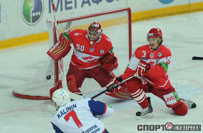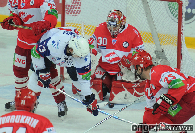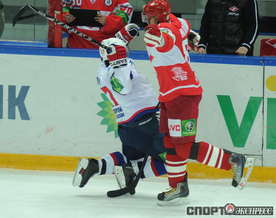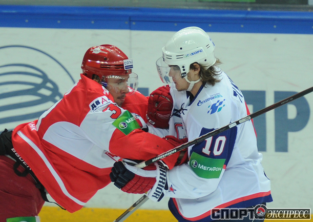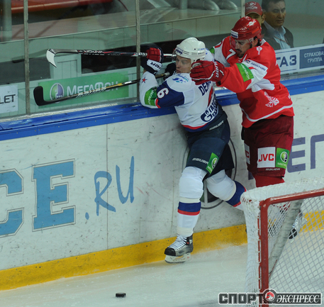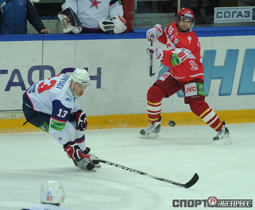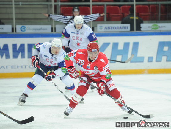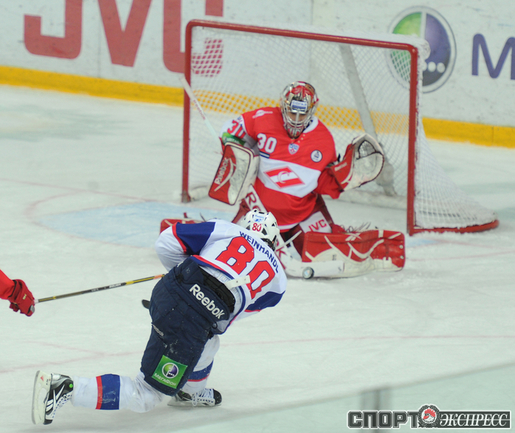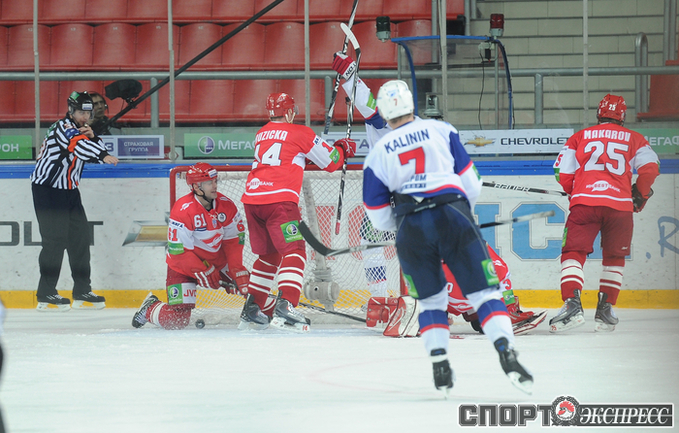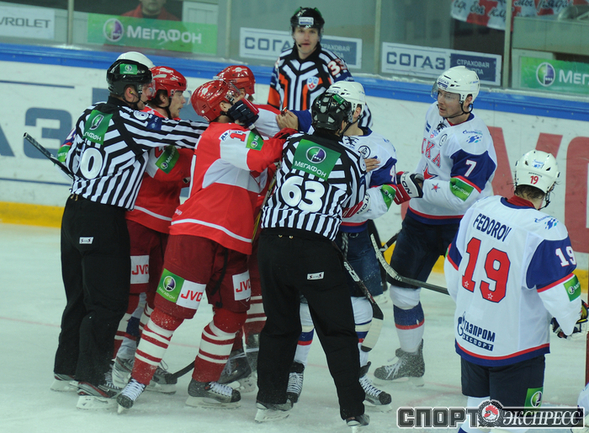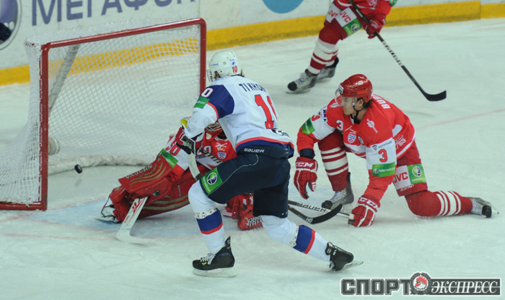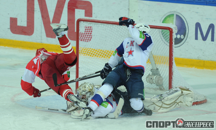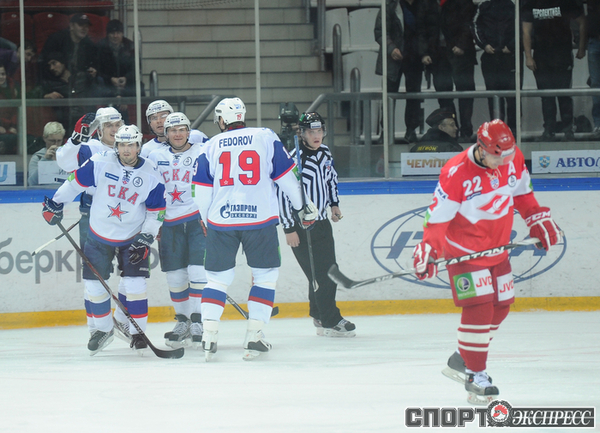 Москва. "Спартак" - СКА - 1:8 (1:1, 0:3, 0:4). Голы: Ружичка - 11 (Макаров), 15:05 (1:0). Тихонов - 4 (Мортенссон), 15:54 (1:1). Денисов - 3, 21:02 (1:2). Непряев - 5 (Александров, Вишневский), 21:16 (1:3). Калинин - 7 (Пруха, Торесен), 22:48 (1:4). Денисов - 4 (Вейнхандль), 41:00 (1:5 - бол.). Макаров - 6 (Федоров, Торесен), 48:15 (1:6 - бол.). Тихонов - 5 (Пруха, Мортенссон), 48:54 (1:7). Непряев - 6 (Тихонов), 52:25 (1:8). Фото Антона СЕРГИЕНКО "СЭ Интернет".