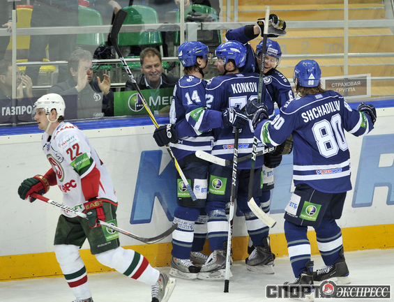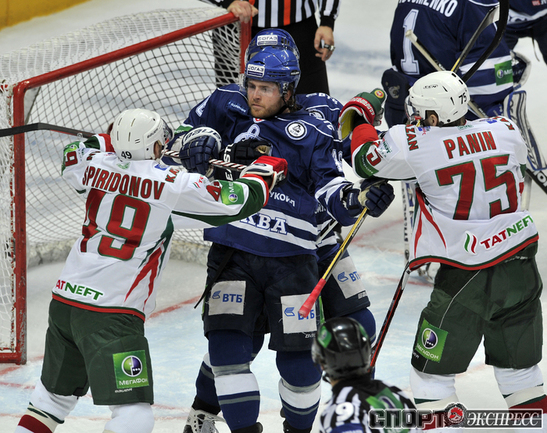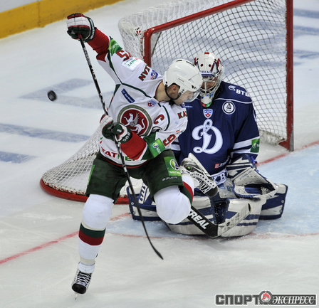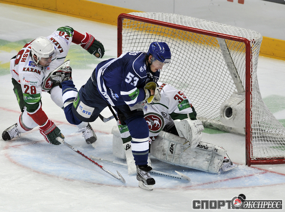 КХЛ. Регулярный чемпионат. "Динамо" (Москва) - "Ак Барс" - (Казань) - 3:0 (0:0, 2:0, 1:0). Голы: Соин - 6, 35:40 (1:0 - мен.). Горохов - 5, 38:54 (2:0). Коньков - 6 (Соин), 48:42 (3:0). Фото - Алексей ИВАНОВ, "СЭ"