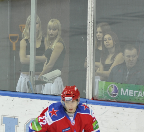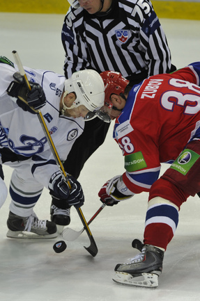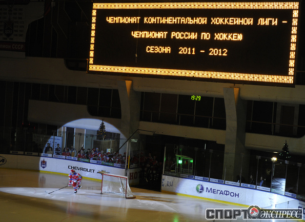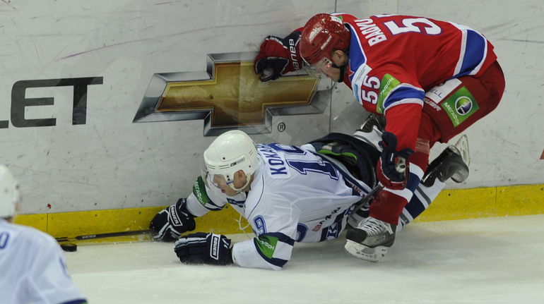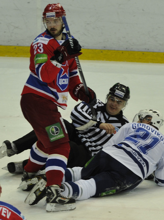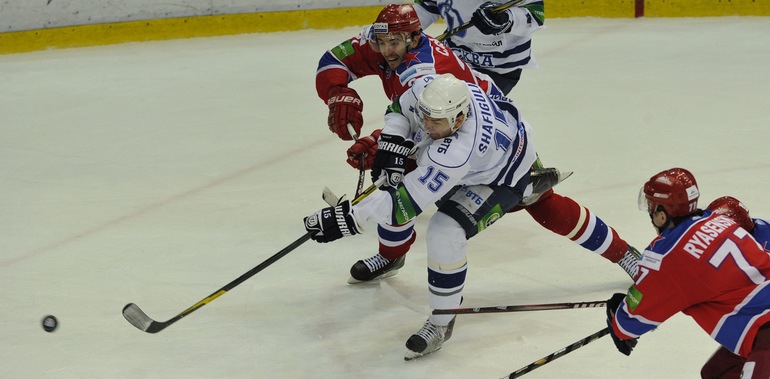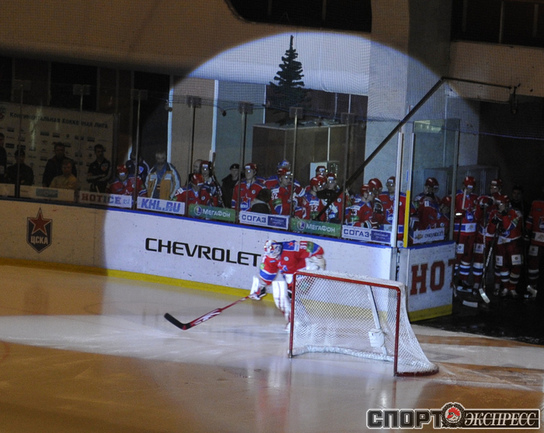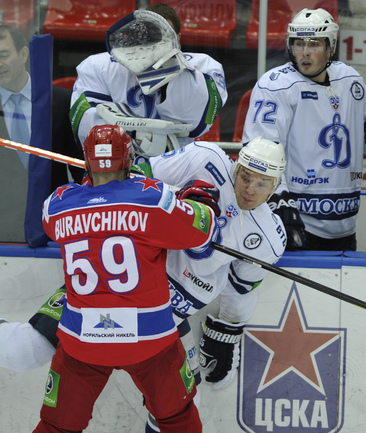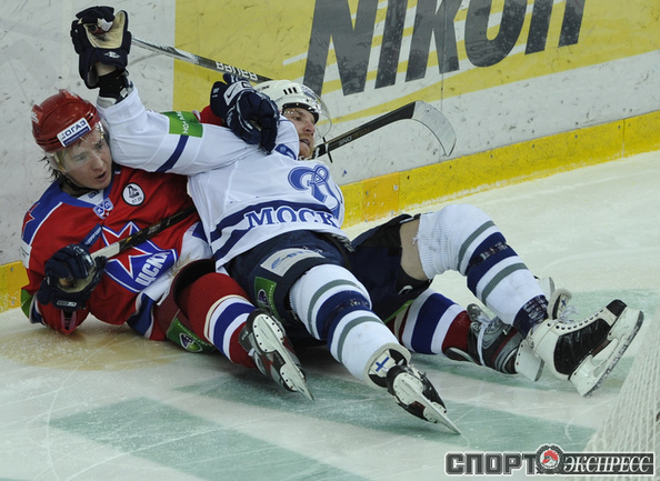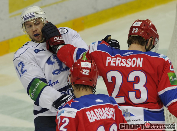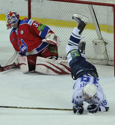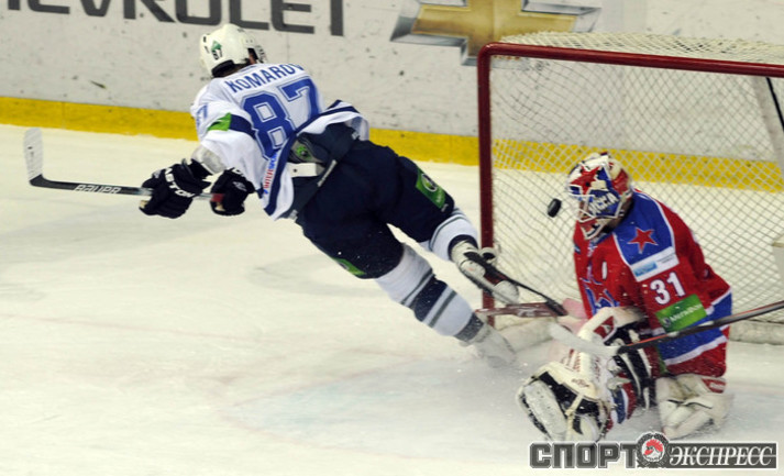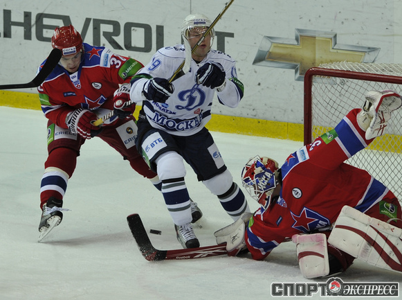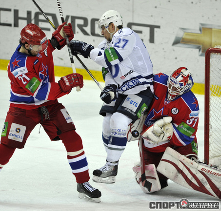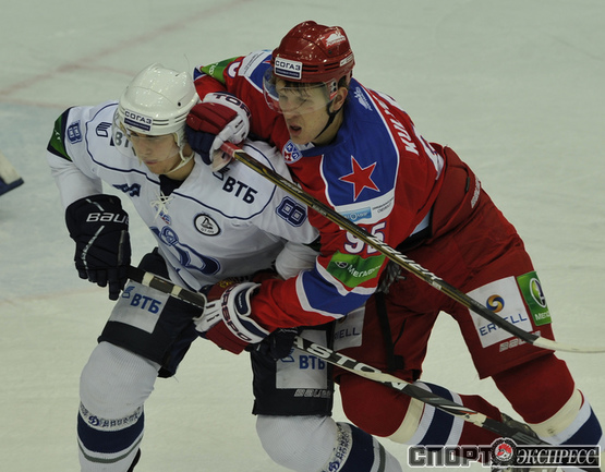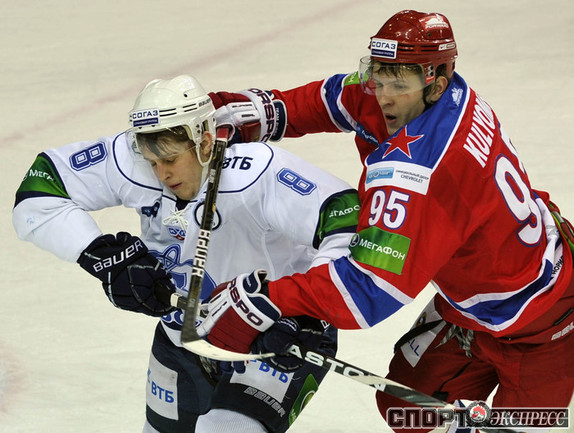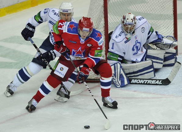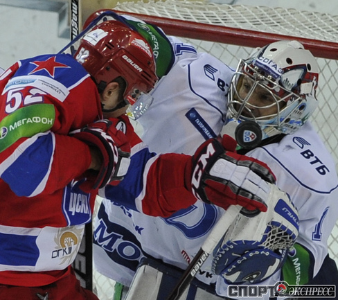 Хоккей. КХЛ. Регулярный чемпионат. ЦСКА - "Динамо" (Москва) - 2:0 (0:0; 1:0;1:0). Армеец Александр Гуськов, отметивший накануне 35-летний день рождения, забросил первую шайбу и отдал голевой пас Илье Зубову. Фото - Александр ФЕДОРОВ, "СЭ"