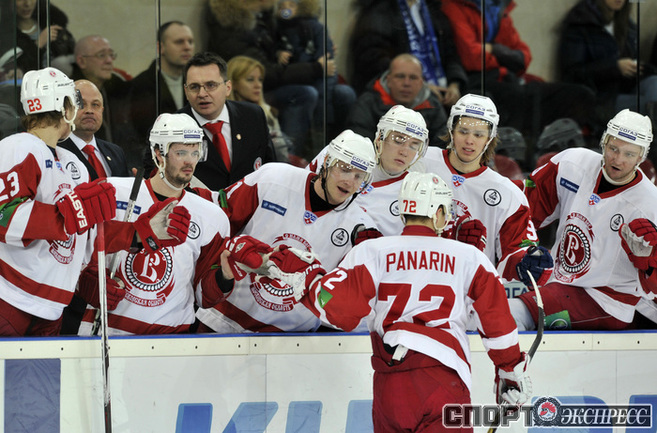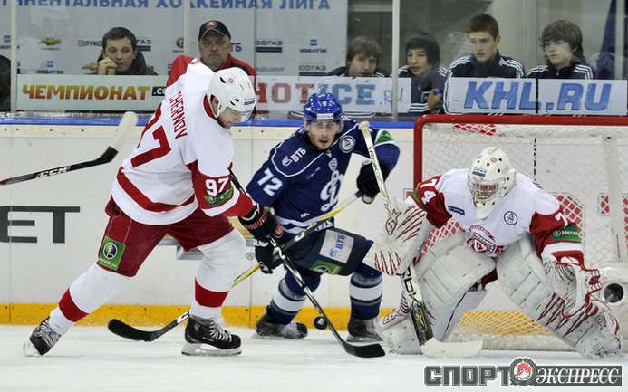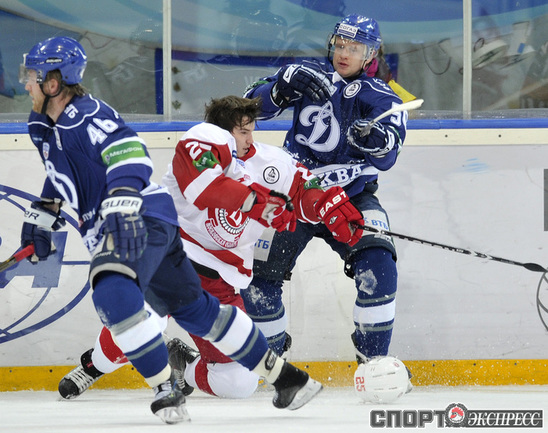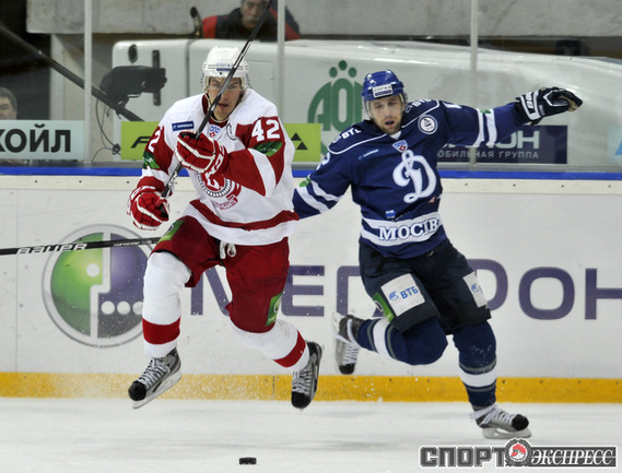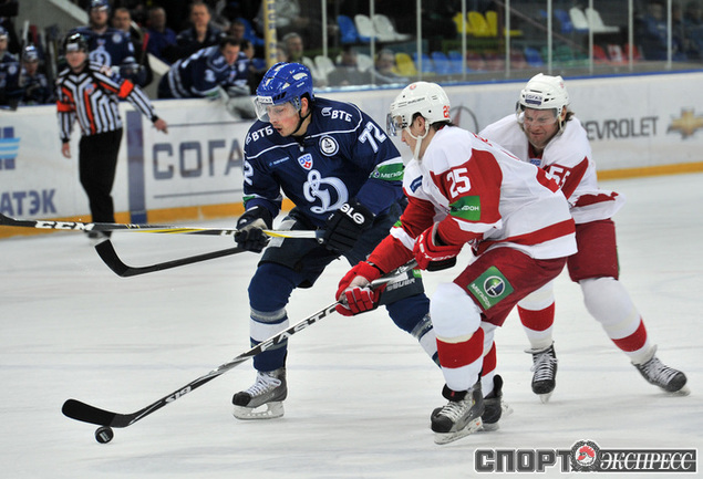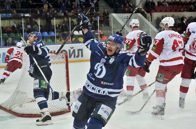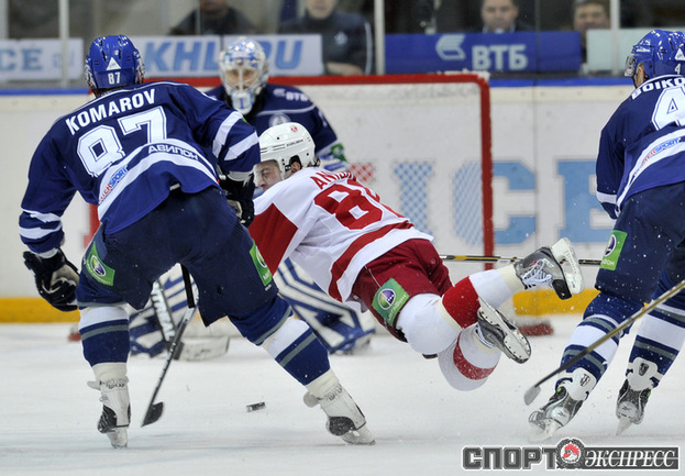 Хоккей. КХЛ. Регулярный чемпионат. "Динамо" (Москва) - "Витязь" (Чехов) - 3:2 Б (1:0, 0:1, 1:1, 0:0, 1:0). Голы: Комаров - 6 (Коньков), 18:53 (1:0). Панарин - 9 (Анисин), 36:06 (1:1 - бол.). Клепиш - 5 (Горовиков, Граняк), 42:28 (2:1 - бол.). Анисин - 15 (Тимкин, Тарнаски), 59:03 (2:2). Победный буллит: Квапил. Фото - Алексей ИВАНОВ, "СЭ"