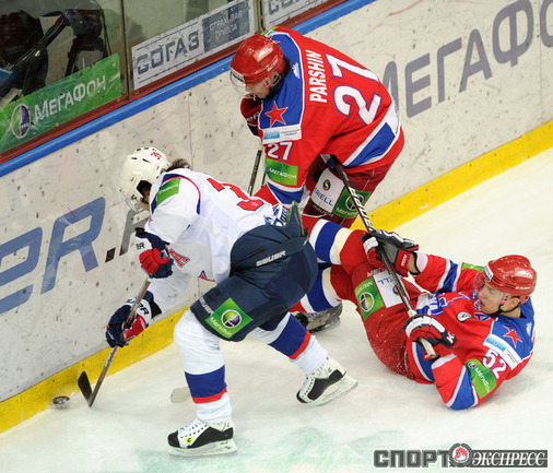 Хоккей. КХЛ. Регулярный чемпионат. ЦСКА - СКА (Санкт-Петербург) - 2:5 (1:1, 1:3, 0:1). Голы: Паршин - 4, 15:10 (1:0). Вейнхандль - 11, 18:47 (1:1). Калинин - 12 (Вейнхандль), 25:32 (1:2 - бол.). Артюхин - 8 (Калинин, Кольцов), 27:10 (1:3 - бол.). Вейнхандль - 12 (Мортенссон), 27:36 (1:4). Паршин - 5 (Рылов), 34:58 (2:4 - бол.). Рыбин - 8 (Вейнхандль, Мортенссон), 47:49 (2:5). Вратари: Гайдученко - Штепанек. Это поражение стало шестым подряд для ЦСКА. Фото - Федор УСПЕНСКИЙ, "СЭ"