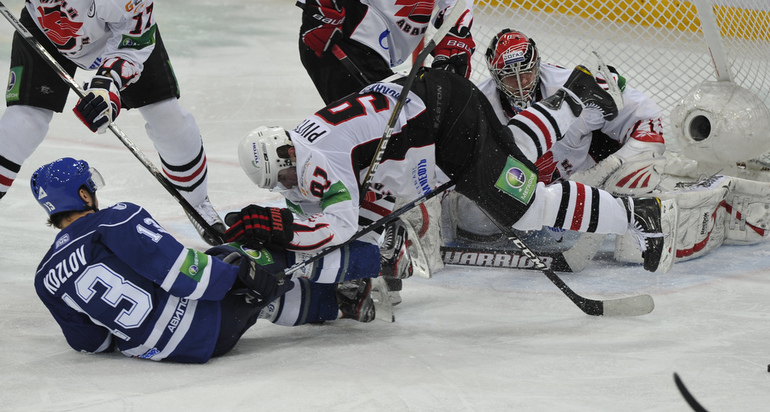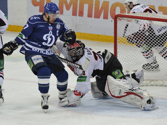 КХЛ. Регулярный чемпионат. "Динамо" (Москва) - "Авангард" (Омск) - 1:2 Б (1:0, 0:1, 0:0, 0:0, 0:1). Голы: Квапил - 9 (Пестунов), 0:43 (1:0). Пивцакин - 1 (Пережогин), 38:12 (1:1). Победный буллит: Пережогин. Вратари: Волков - Рамо. С трибуне за происходящим на льду наблюдал российский актёр театра и кино, телеведущий Михаил Пореченков. Фото - Александр ФЕДОРОВ, "СЭ"