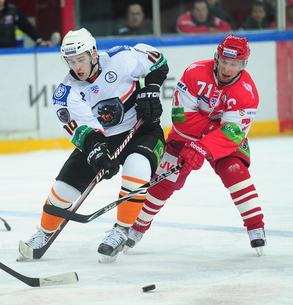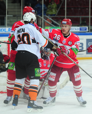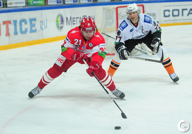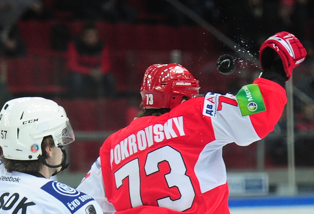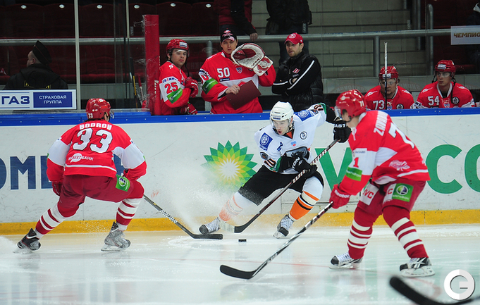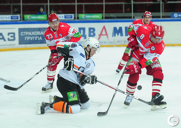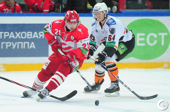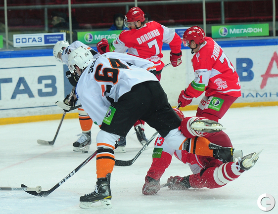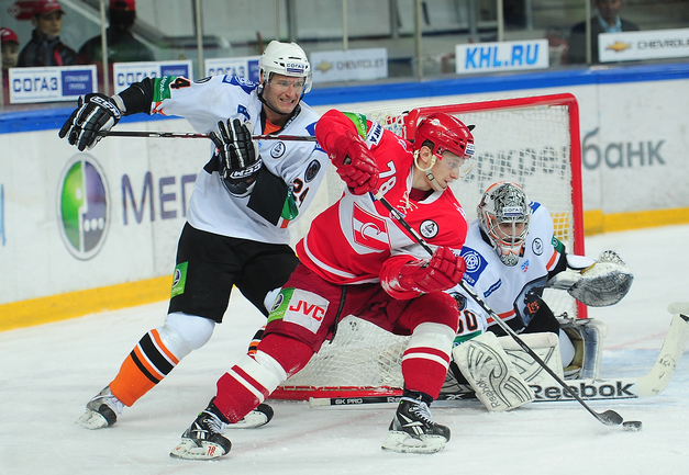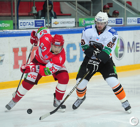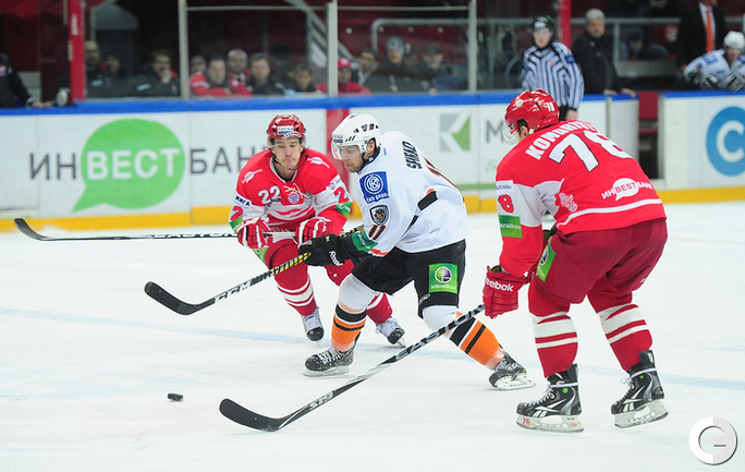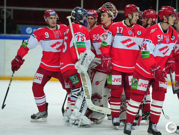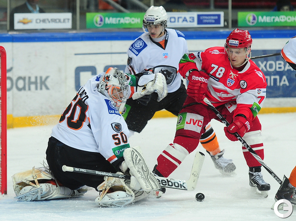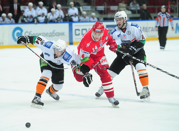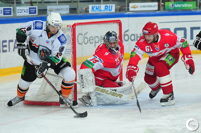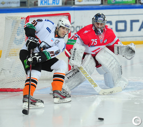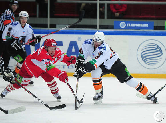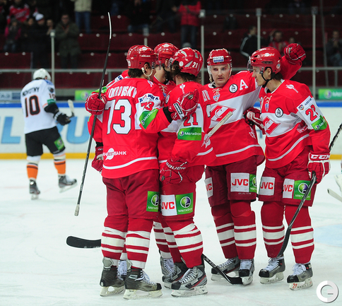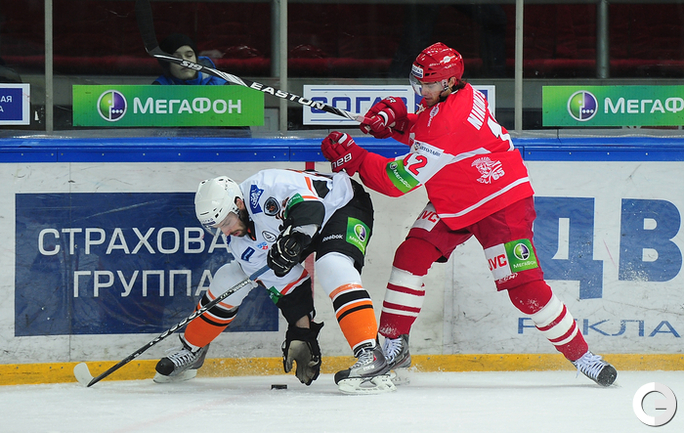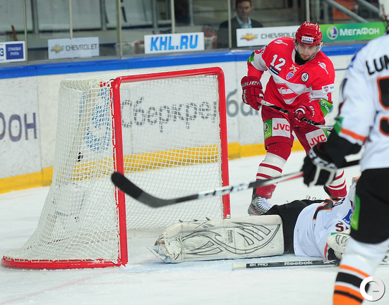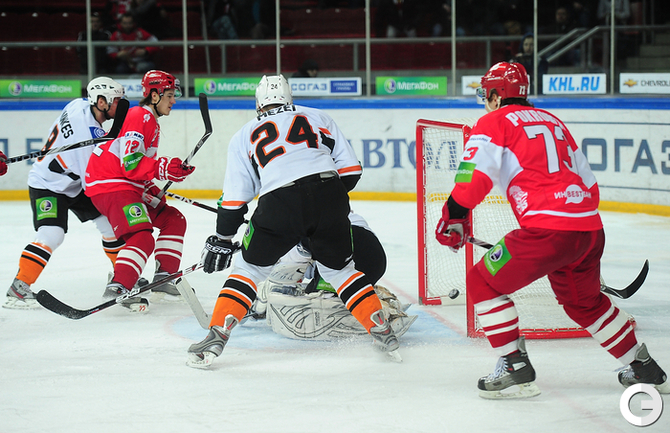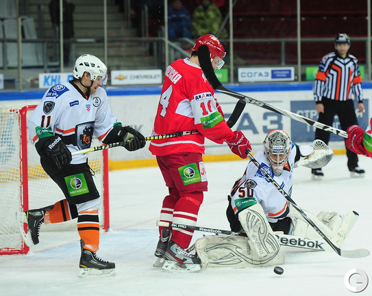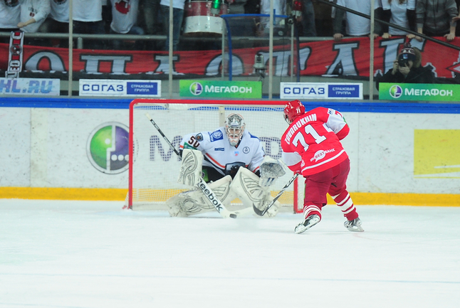 4.02.2012 года. Москва. Сокольники. КХЛ. "Спартак"(Москва) - "Лев" - 4:2. Бодров (1:0), Шпирко (1:1), Лундберг (1:2), Никонцев (2:2), Юньков (3:2), Заварухин (4:2). Фото Антона СЕРГИЕНКО "СЭ ИНТЕРНЕТ".