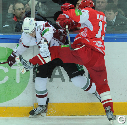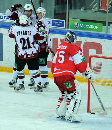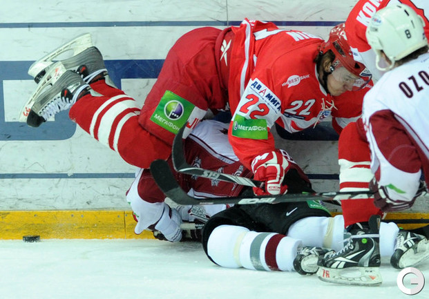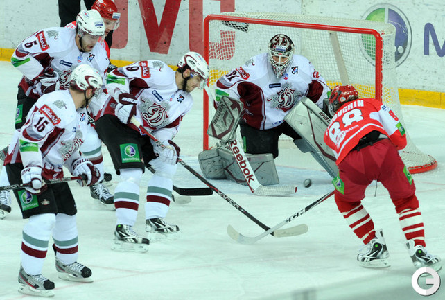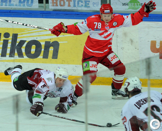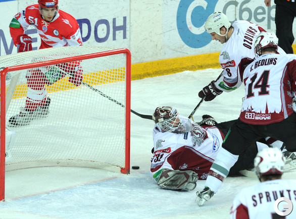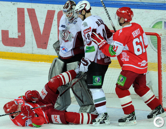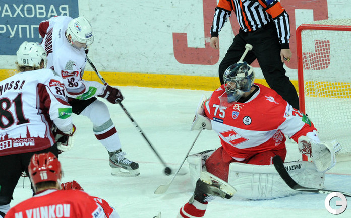 Хоккей. КХЛ. Регулярный чемпионат. "Спартак" (Москва) - "Динамо" (Рига) - 1:2 (1:0, 0:2, 0:0). Голы: Ружичка - 22 (Людучин), 6:34 (1:0). Спруктс - 11 (Озолиньш, Букартс), 30:22 (1:1). Анкипанс - 5 (Лусениус, Галвиньш), 37:20 (1:2). Вратари: Борисов - Холт. Штефан Ружичка забил гол в свой 27-й день рождения. Фото - Никита УСПЕНСКИЙ, "СЭ"