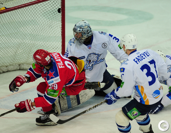 17.02.2012 года. Москва. ЦСКА- "Барыс"- 4:1. Голы: Юнланд (0:1), Сергеев (1:1), Яшин (2:1), Яшин (1:1), Филатов (4:1) Фото Антона СЕРГИЕНКО "СЭ Интернет"