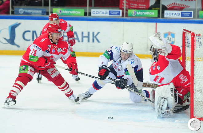19.02.2012 года. Москва. Сокольники. "Спартак"- СКА- 4:2. Голы: Пруха(0:1), Никонцев(1:1), Людучин(2:1), Юньков(3:1), Клименко(3:2), Никонцев(4:2) Фото Антона СЕРГИЕНКО "СЭ ИНТЕРНЕТ"