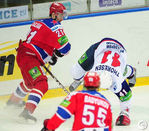4.03.2012 года. Москва. Хоккей. КХЛ. ЦСКА- СКА- 1:2(дв). Голы: Калинин 0:1, Прохоркин 1:1, Афиногенов 1:2 Фото Антона СЕРГИЕНКО, "СЭ ИНТЕРНЕТ"