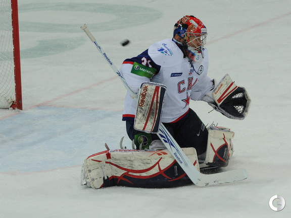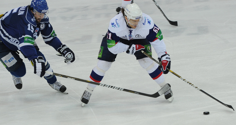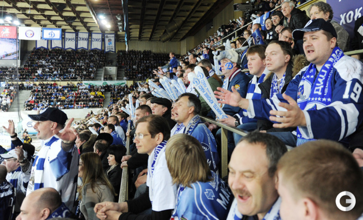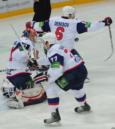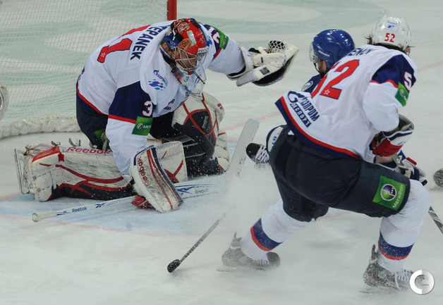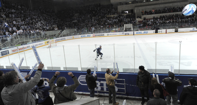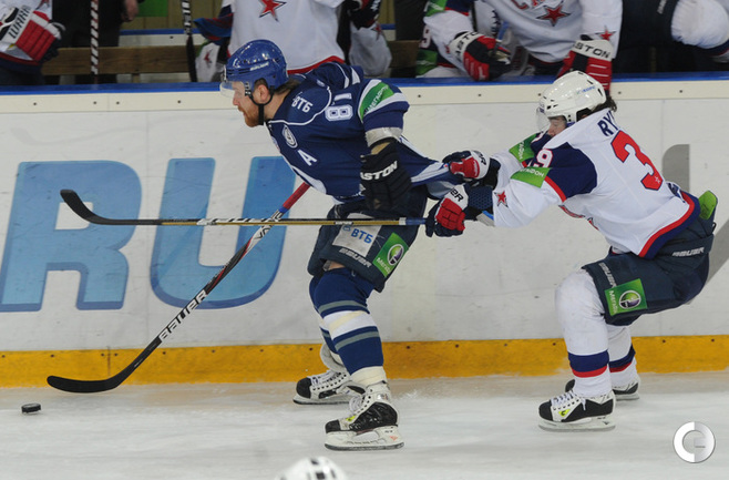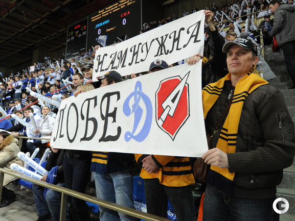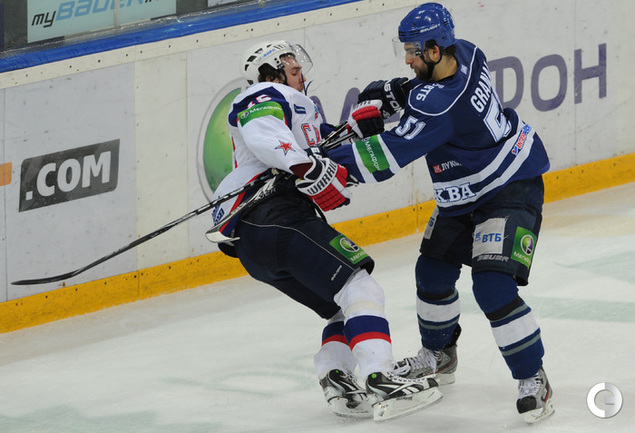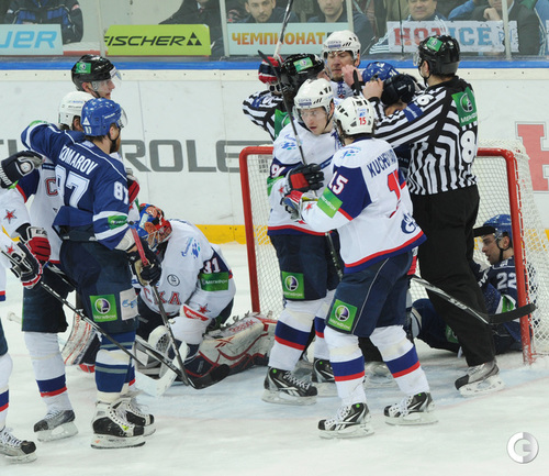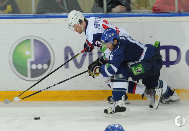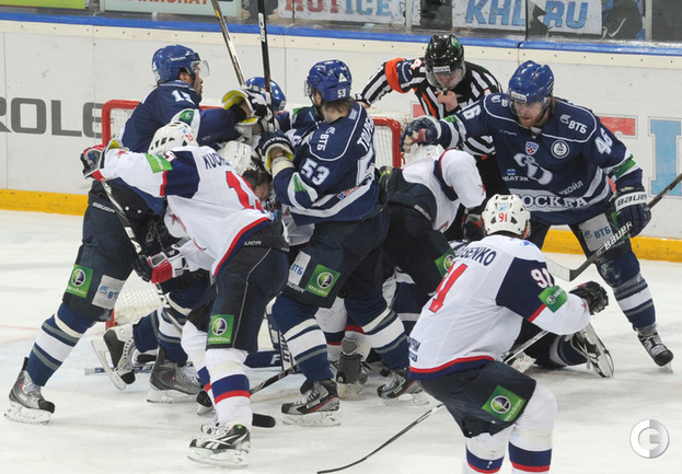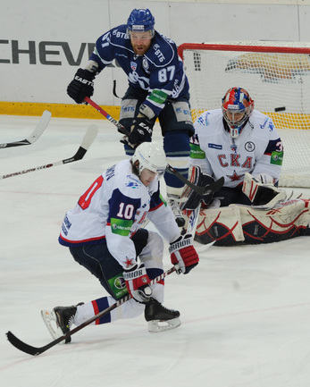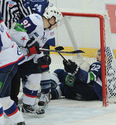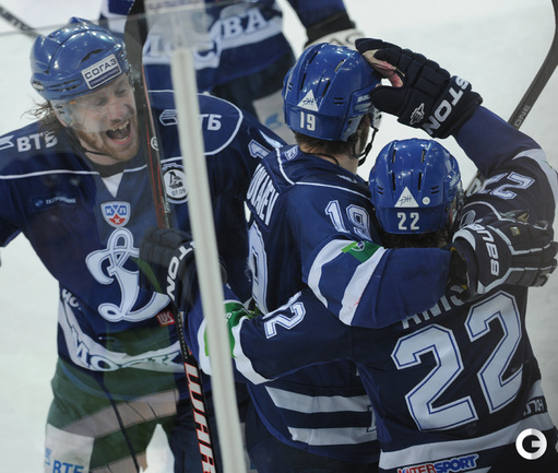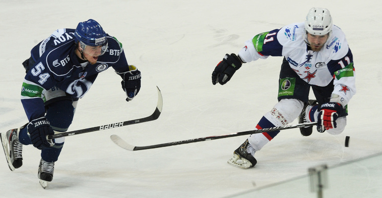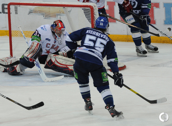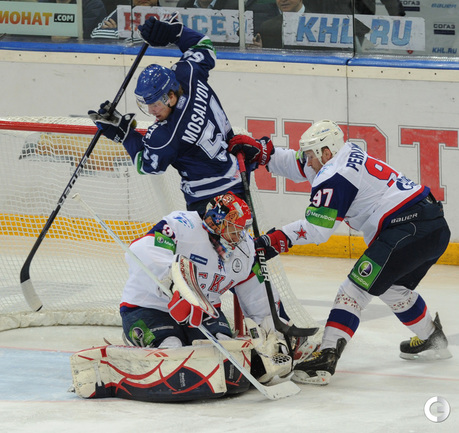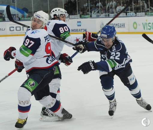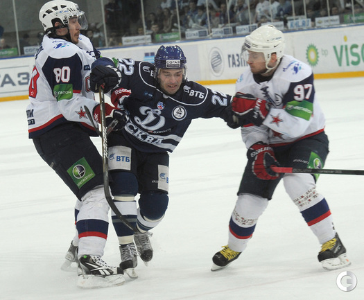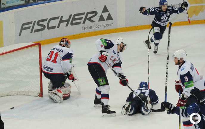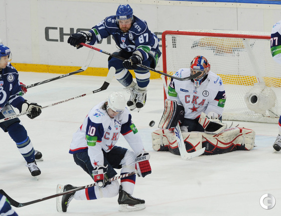 КХЛ. Плей-офф. 1/2 финала. Третий матч. "Динамо" (Москва) – СКА (Санкт-Петерубрг) – 3:1 (0:0, 1:1, 2:0). Голы: Тарасенко - 10 (Макаров, Кучерявенко), 30:36 (0:1). Вишневский - 1 (Мосалев), 35:37 (1:1). Анисин - 10 (Новак), 52:46 (2:1). Горовиков - 4 (Анисин, Горохов), 54:52 (3:1 - бол.). Один из главных фаворитов Кубка Гагарина - СКА - в третий раз проиграл "Динамо" - 1:3. Фото - Татьяна ДОРОГУТИНА, "СЭ"