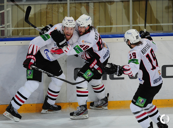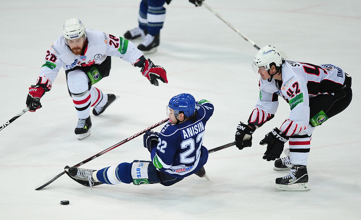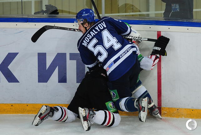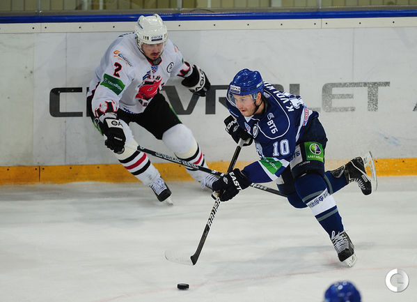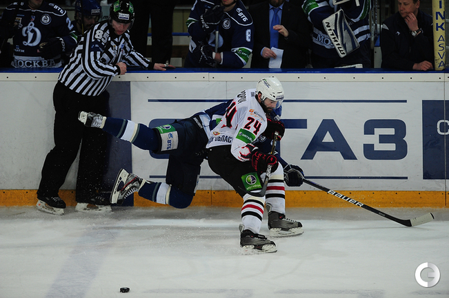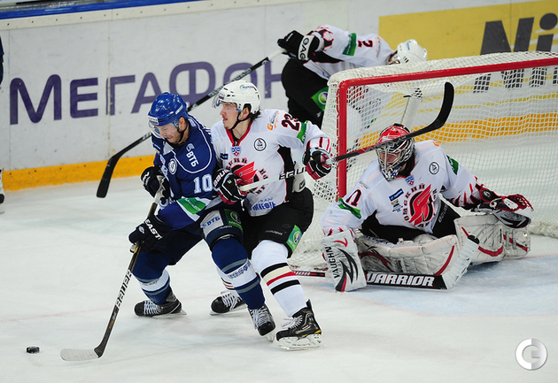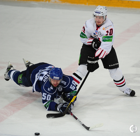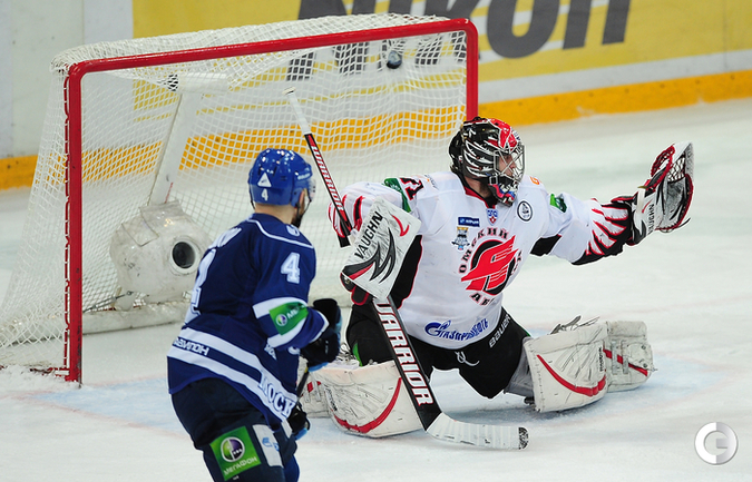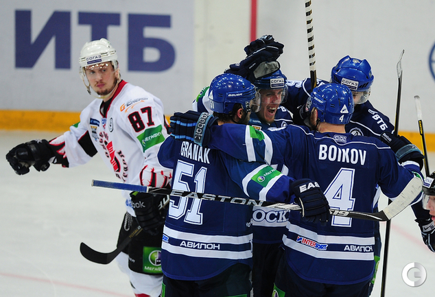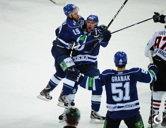 23.04.2012. "Динамо"- "Авангард"- 5:2. Голы: Комаров - 5 (Анисин, Горовиков), 0:53 (1:0). Шкоула - 1 (Калюжный, Курьянов), 8:55 (1:1). Мосалев - 5 (Бабенко, Кокарев), 15:46 (2:1). Новак - 2 (Анисин, Горовиков), 18:31 (3:1 - бол.). Квапил - 7 (Новак), 31:58 (4:1). Шкоула - 2 (Лямин, Нестеров), 51:53 (4:2). Квапил - 8, 58:10 (5:2 - п.в.). Фото- Антона СЕРГИЕНКО, "СЭ ИНТЕРНЕТ"
