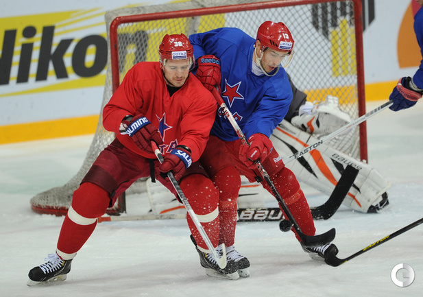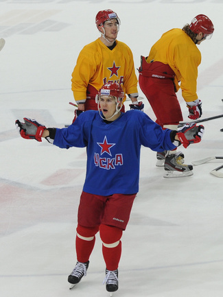 КХЛ. Александр Радулов, получивший травму в последнем матче КХЛ, вновь тренируется в основном составе армейцев. Фото - Федор УСПЕНСКИЙ, "СЭ"