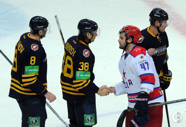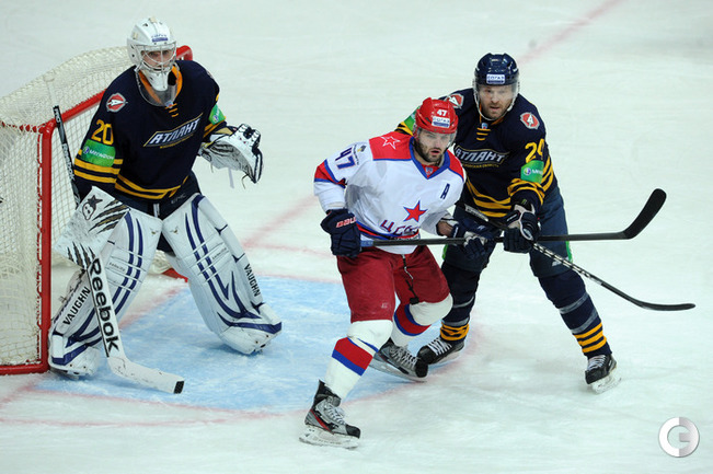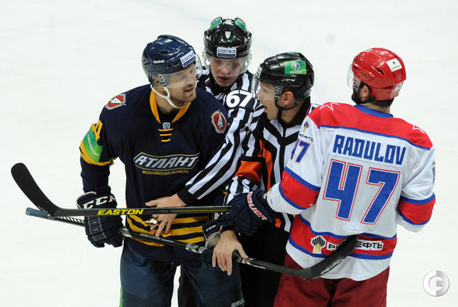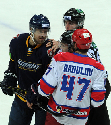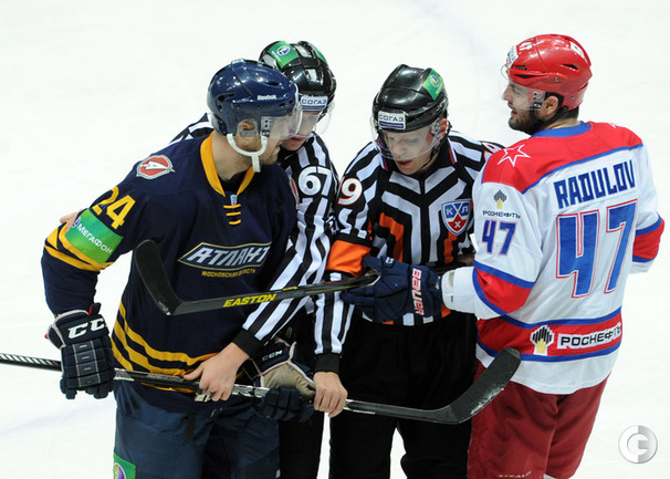 Хоккей. Регулярный чемпионат. "Атлант" (Московская область) - ЦСКА - 0:2 (0:1, 0:0, 0:1). Голы: А.Радулов - 12 (Широков), 9:26 (0:1 - бол.). Зубов - 2 (А.Радулов), 41:46 (0:2). "Атлант" в рамках регулярного чемпионата КХЛ на своем льду проиграл ЦСКА. Для мытищинцев это стало десятое поражение кряду. При этом вратарь армейцев Растислав Стана провел четвертый "сухой" матч в сезоне. Фото - Никита УСПЕНСКИЙ, "СЭ"