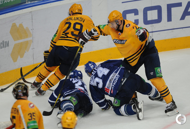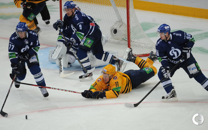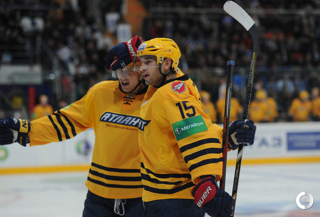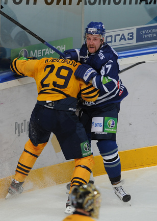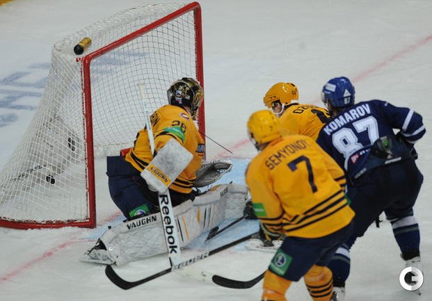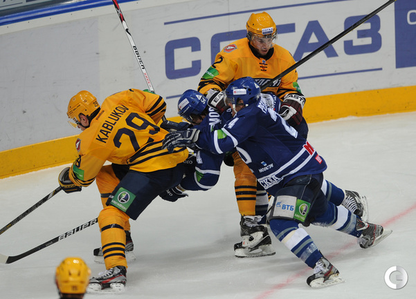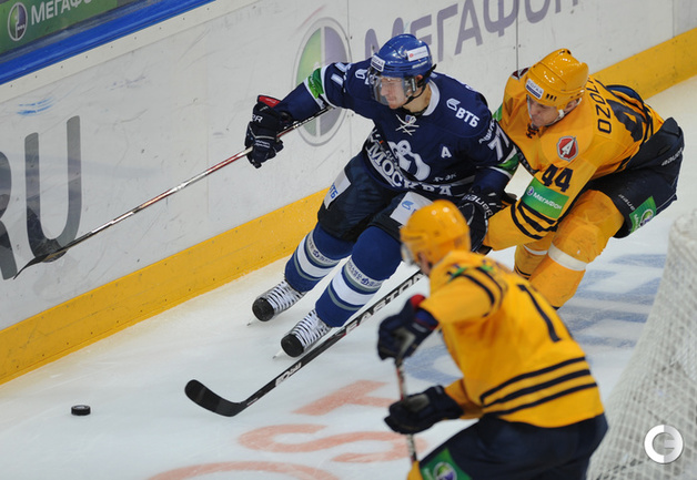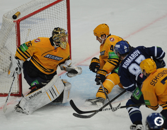 Москва. КХЛ. Регулярный чемпионат. "ХК Динамо" - "Атлант" (Московская область) - 2:5 (0:1, 1:2, 1:2). Голы: Энгквист - 4 (Рукавишников, Лемтюгов), 4:13 (0:1). Тютин - 1 (Жердев, Каблуков), 25:51 (0:2 - бол.). Майоров - 7 (Озолиньш), 35:53 (0:3). Яласваара - 3 (Бэкстрем, Овечкин), 38:05 (1:3). Шевченко - 1 (Сталберг, Озолиньш), 41:58 (1:4). Комаров - 1 (Овечкин, Бэкстрем), 54:51 (2:4 - бол.). Жердев - 9 (Озолиньш, Каблуков), 59:54 (2:5 - п.в.). Фото - Федор УСПЕНСКИЙ, "СЭ"