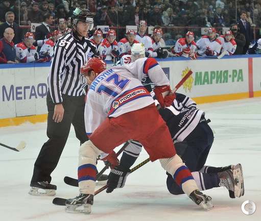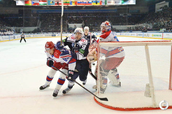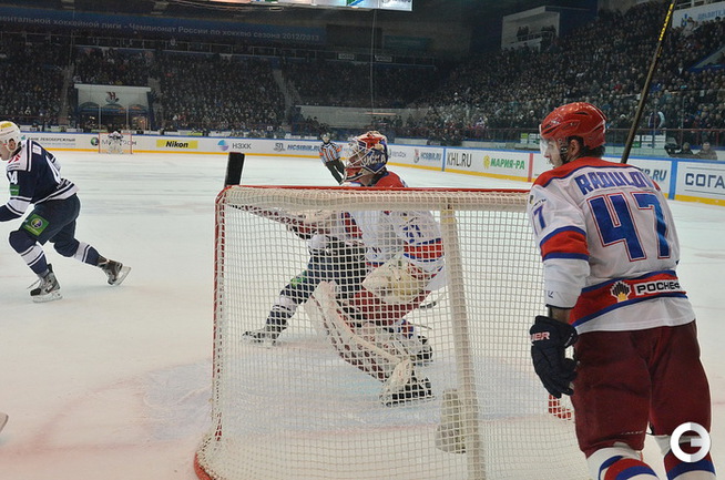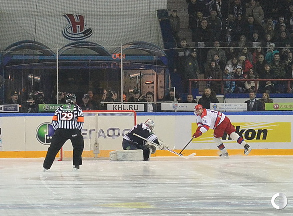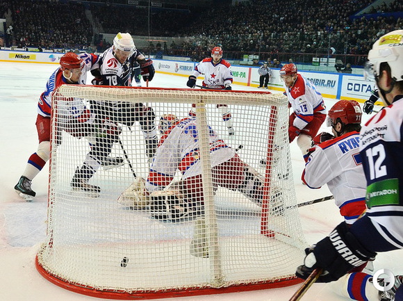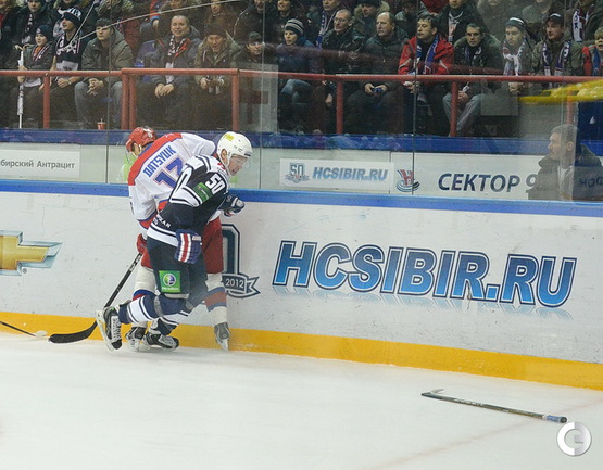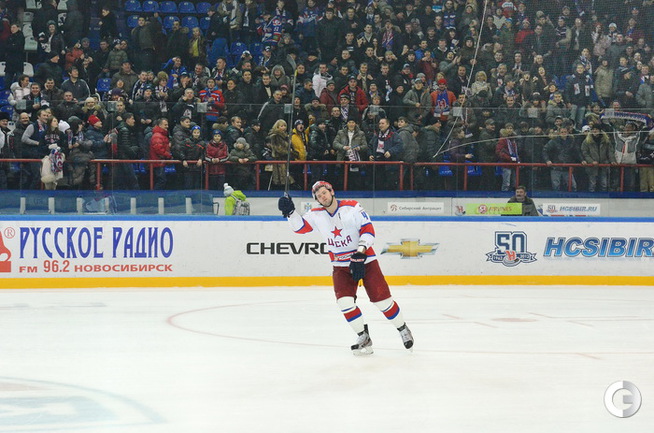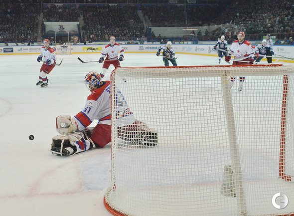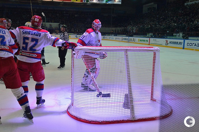 КХЛ. Регулярный чемпионат. "Сибирь" - ЦСКА - 2:3 Б (0:2, 1:0, 1:0, 0:0, 0:1). Голы: Жарков - 5 (Дэвис, Грабовский), 3:01 (0:1). Перссон - 2 (А. Радулов), 19:35 (0:2). Копейкин - 4 (Никулин, Кулда), 35:49 (1:2 - бол.). Кудроч - 7 (Лехтеря), 59:13 (2:2). В день своего 50-летия "Сибирь" в драматичном по накалу матче уступила ЦСКА в серии буллитов – 2:3. Фото - Алексей ВЬЮГИН