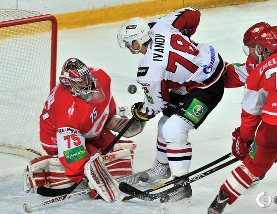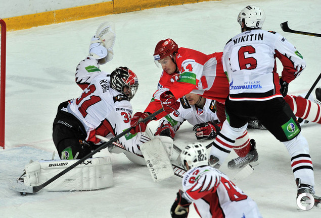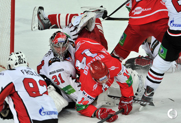 КХЛ. Регулярный чемпионат. "Спартак" (Москва) - "Авангард" (Омск) - 0:3 (0:1, 0:1, 0:1). Голы: Фролов - 9 (Иванов), 12:49 (0:1). Волков - 3 (Курьянов), 21:18 (0:2). Первушин - 2 (Курьянов), 53:31 (0:3). Фото - Алексей Иванов, "СЭ"