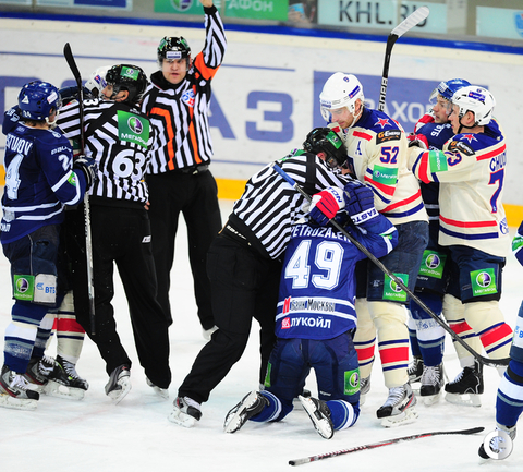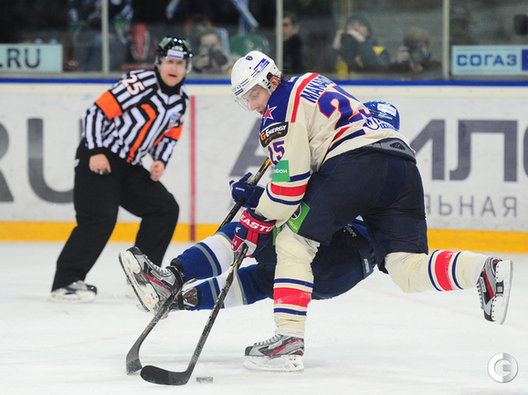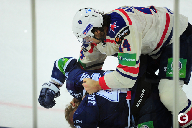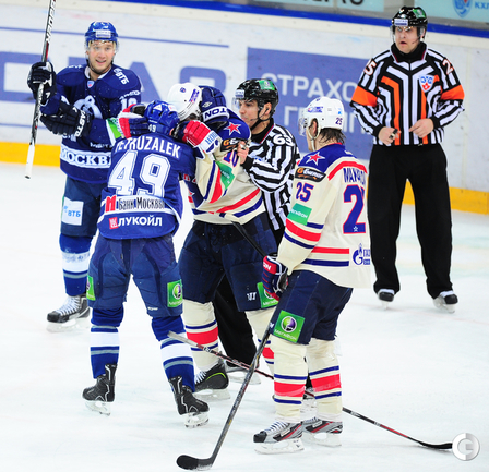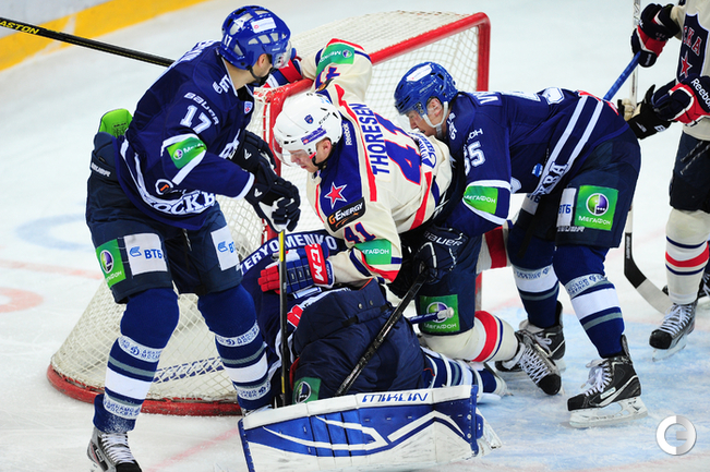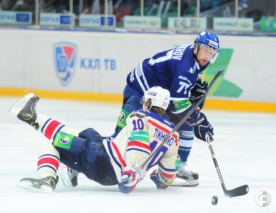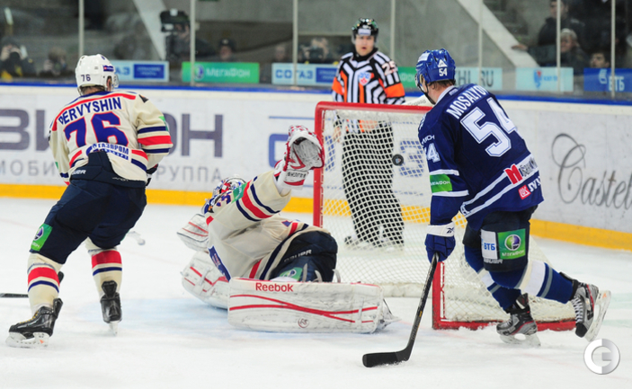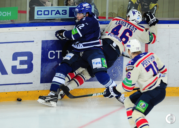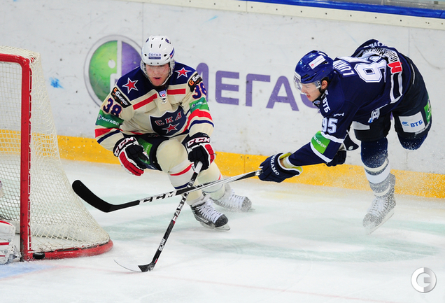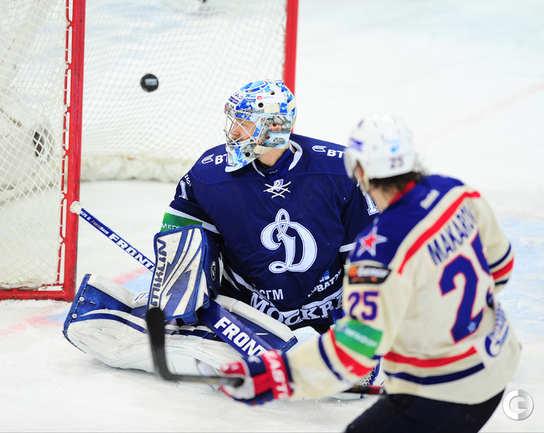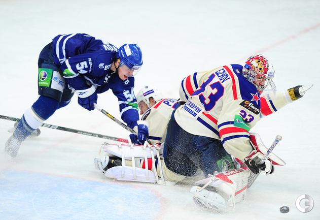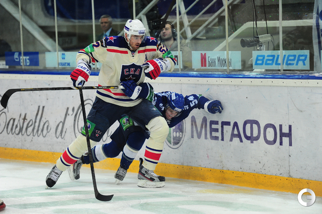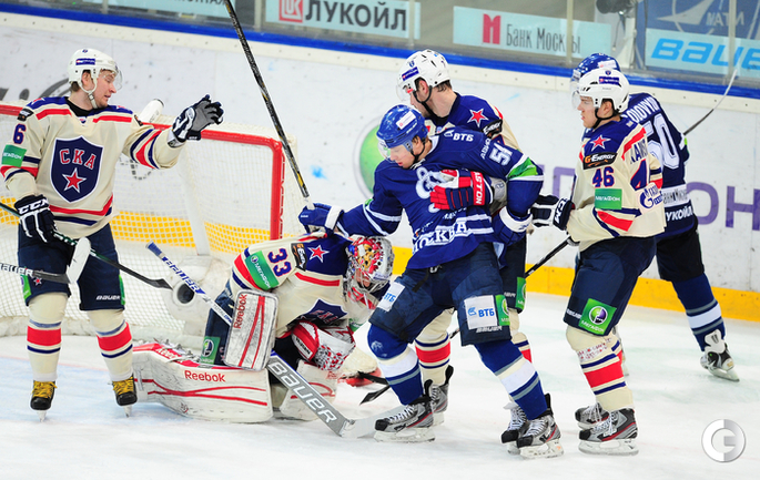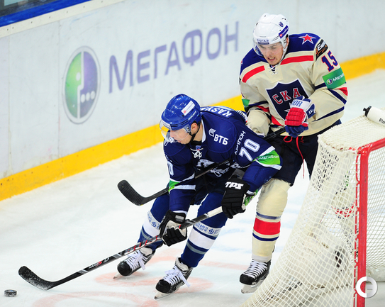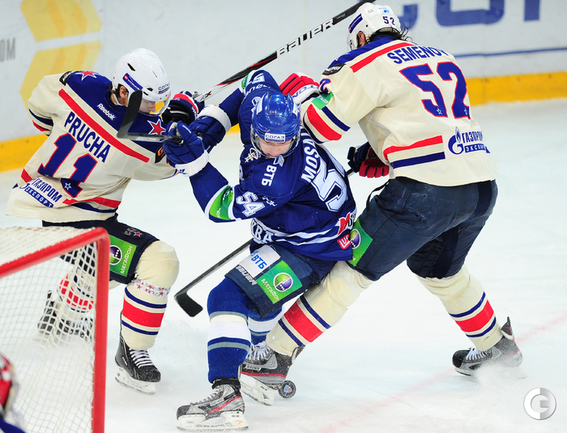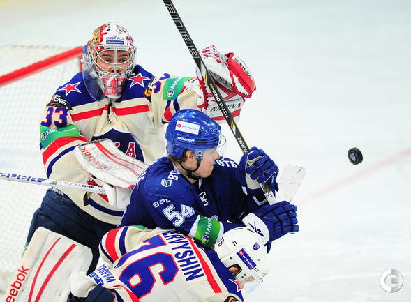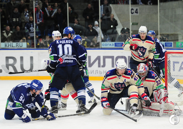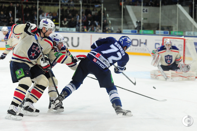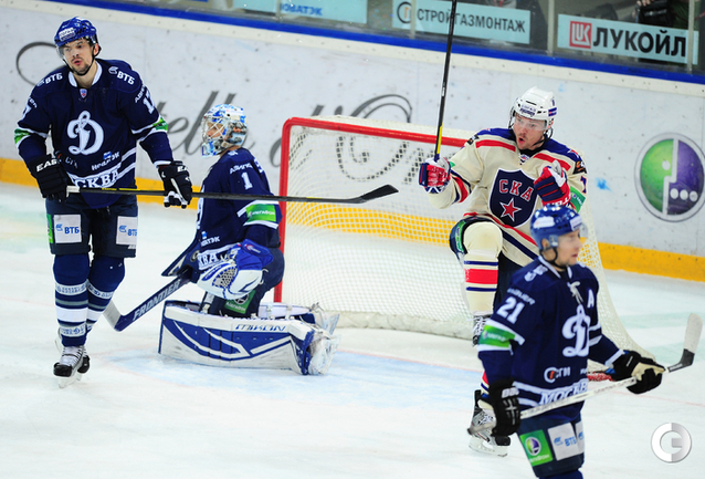 КХЛ. Регулярный чемпионат. МСА "Лужники". "Динамо" (Москва) - СКА (Санкт-Петербург) - 1:2 (0:1, 0:1, 1:0). Голы: Макаров - 10 (Калинин, Тихонов), 12:23 (0:1 - бол.). Калинин - 5 (Мортенссон), 35:28 (0:2). Касянчук - 7 (Квапил, Граняк), 59:17 (1:2). Фото - Антон СЕРГИЕНКО, "СЭ"