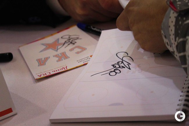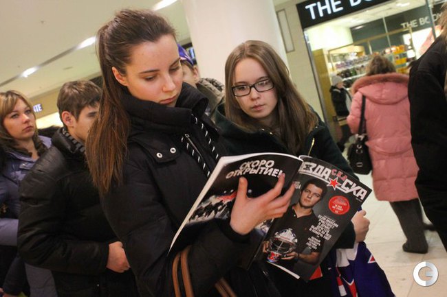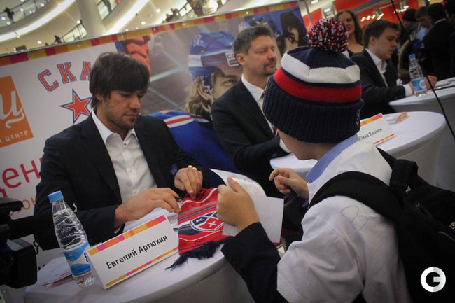 В автограф-сессии в рамках мероприятия "День СКА" в одном из крупнейших гипермаркетов Санкт-Петербурга приняли участие главный тренер команды Юкко Ялонен, вратарь Илья Ежов и нападающие Евгений Артюхин, Теему Рамстедт, Игорь Макаров и Максим Афиногенов. Фото Кристины КОРОВНИКОВОЙ
