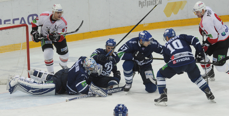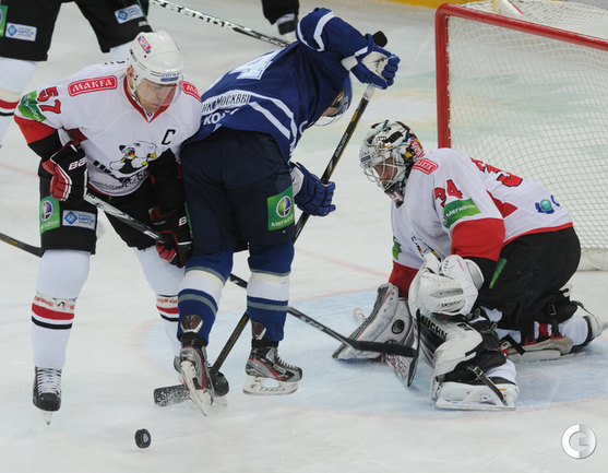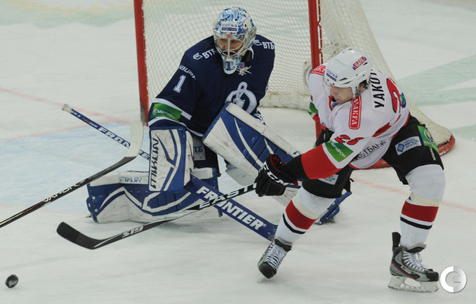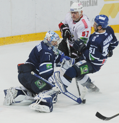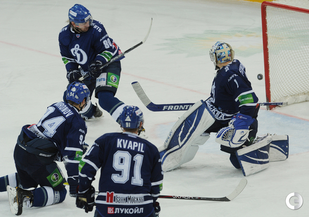 Москва. КХЛ. Регулярный чемпионат. "Динамо" - "Трактор" - 2:0. Голы: Квапил - 7 (Горохов), 21:26 (1:0 - бол.). Мосалев - 3 (Горохов, Цветков), 44:42 (2:0). Фото Татьяны ДОРОГУТИНОЙ, "СЭ"